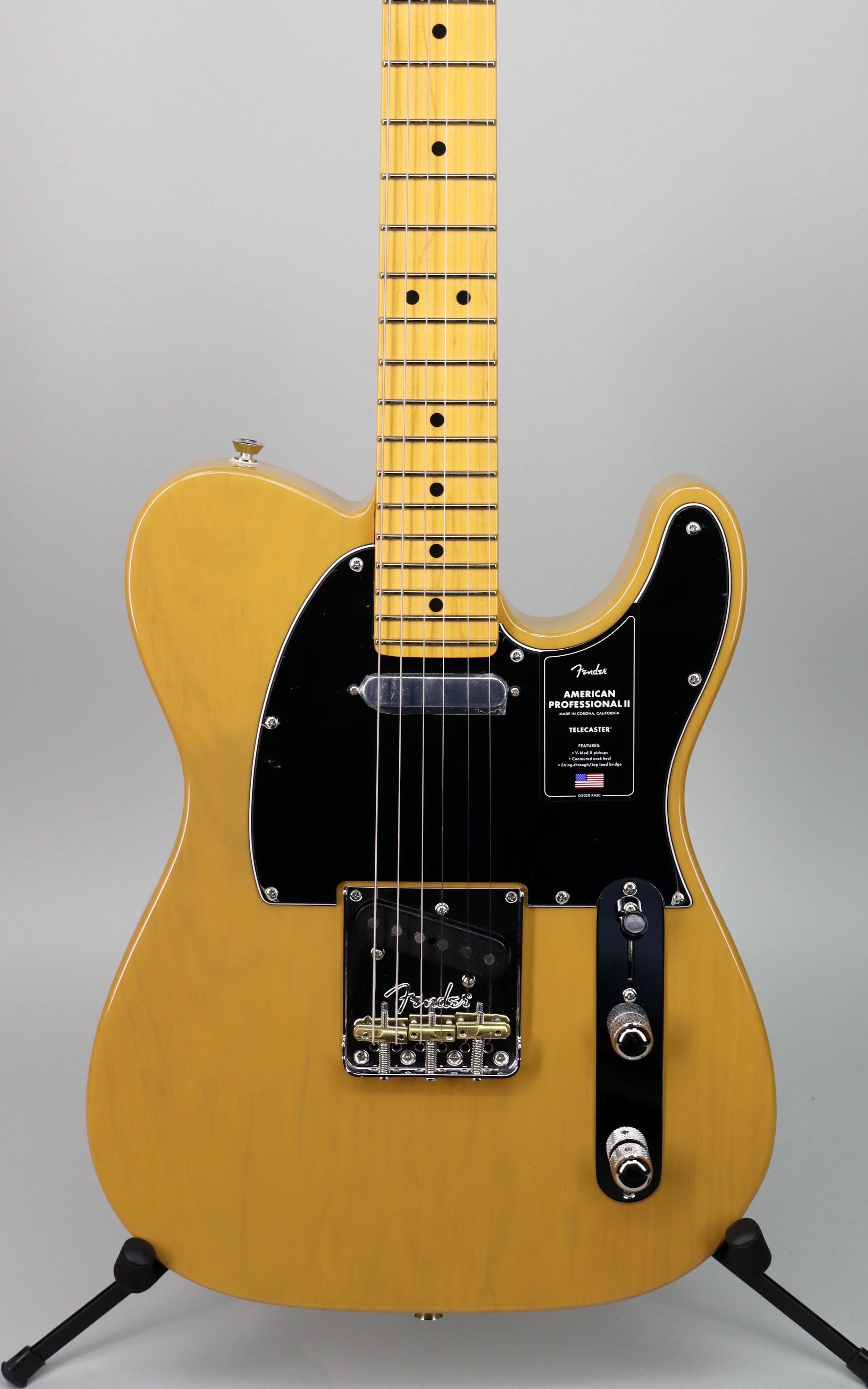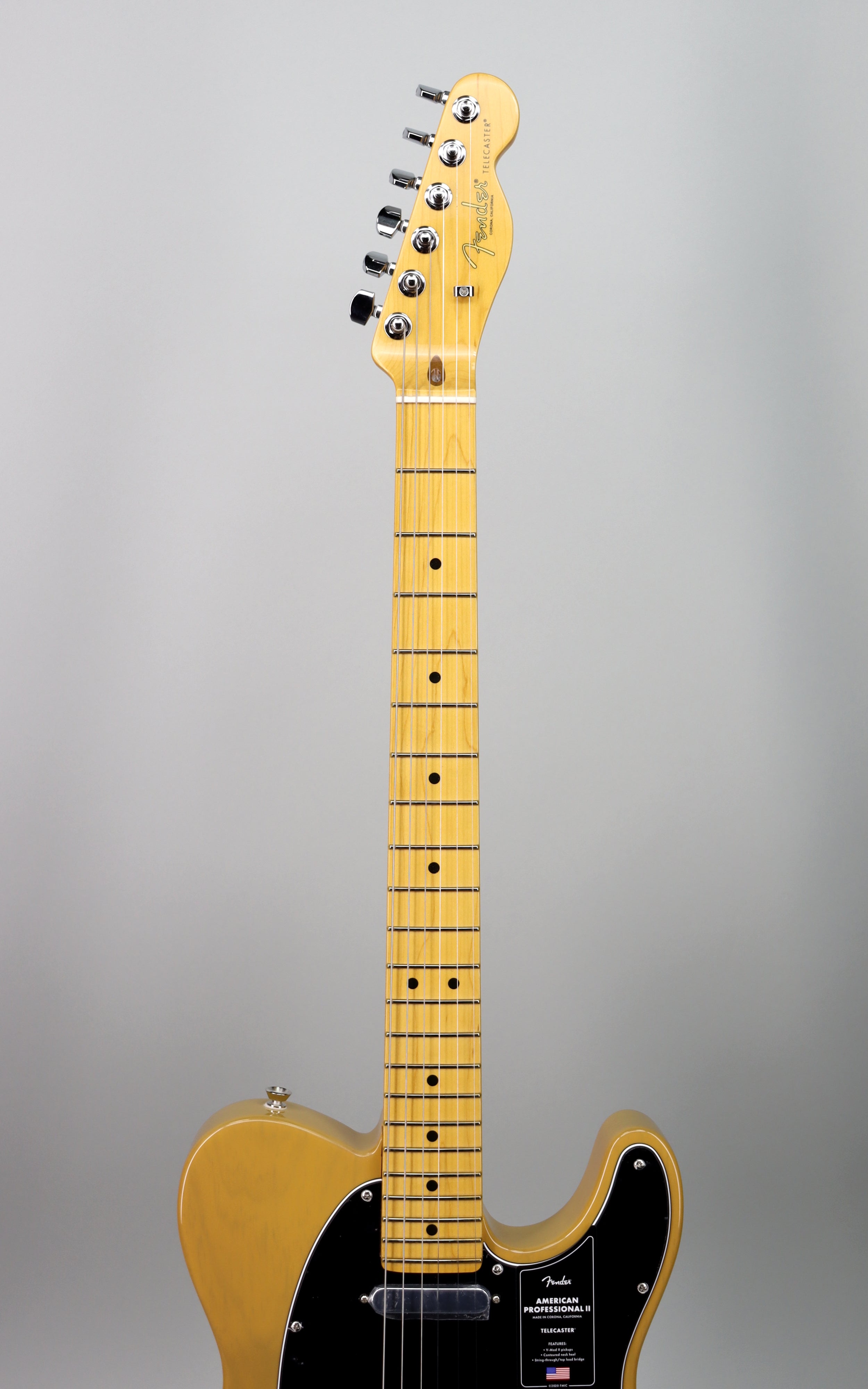 A modern reimagining of the iconic Tele, the American Professional II delivers classic twang with updated playability and tone. It features Tim Shaw–designed V‑Mod II single coils for balanced clarity, a refined Deep C neck with rolled fingerboard edges for comfort, and a versatile push‑push tone control plus treble‑bleed circuit that retain crisp highs when rolling back the volume. Enhanced with a top‑load/string‑through bridge with compensated brass “bullet” saddles, this guitar flexes from vintage shimmer to flexible modern precision—all housed in a rugged design complete with deluxe molded hard case.