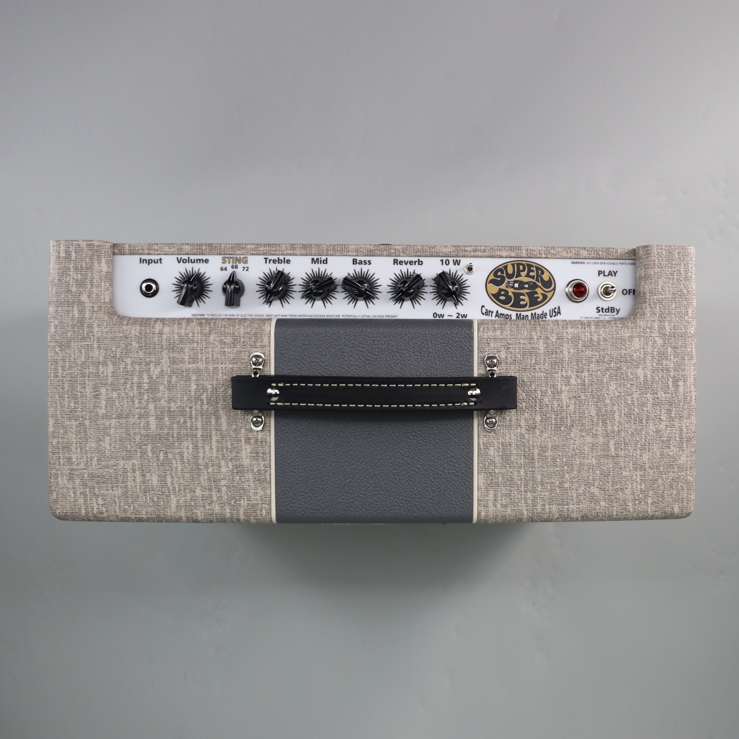 Switches: Three-position “Sting” voicing switch (64 / 68 / 72) ; Attenuator in/out toggle (10 W/2 W) ; On/Off/Standby.