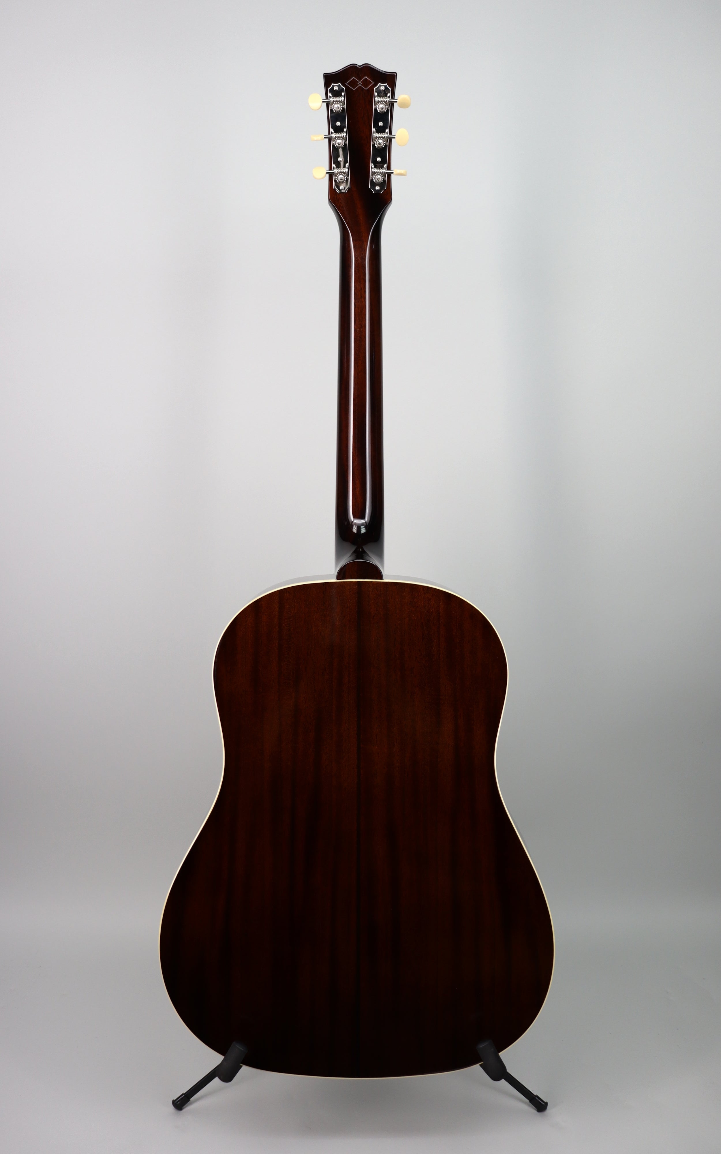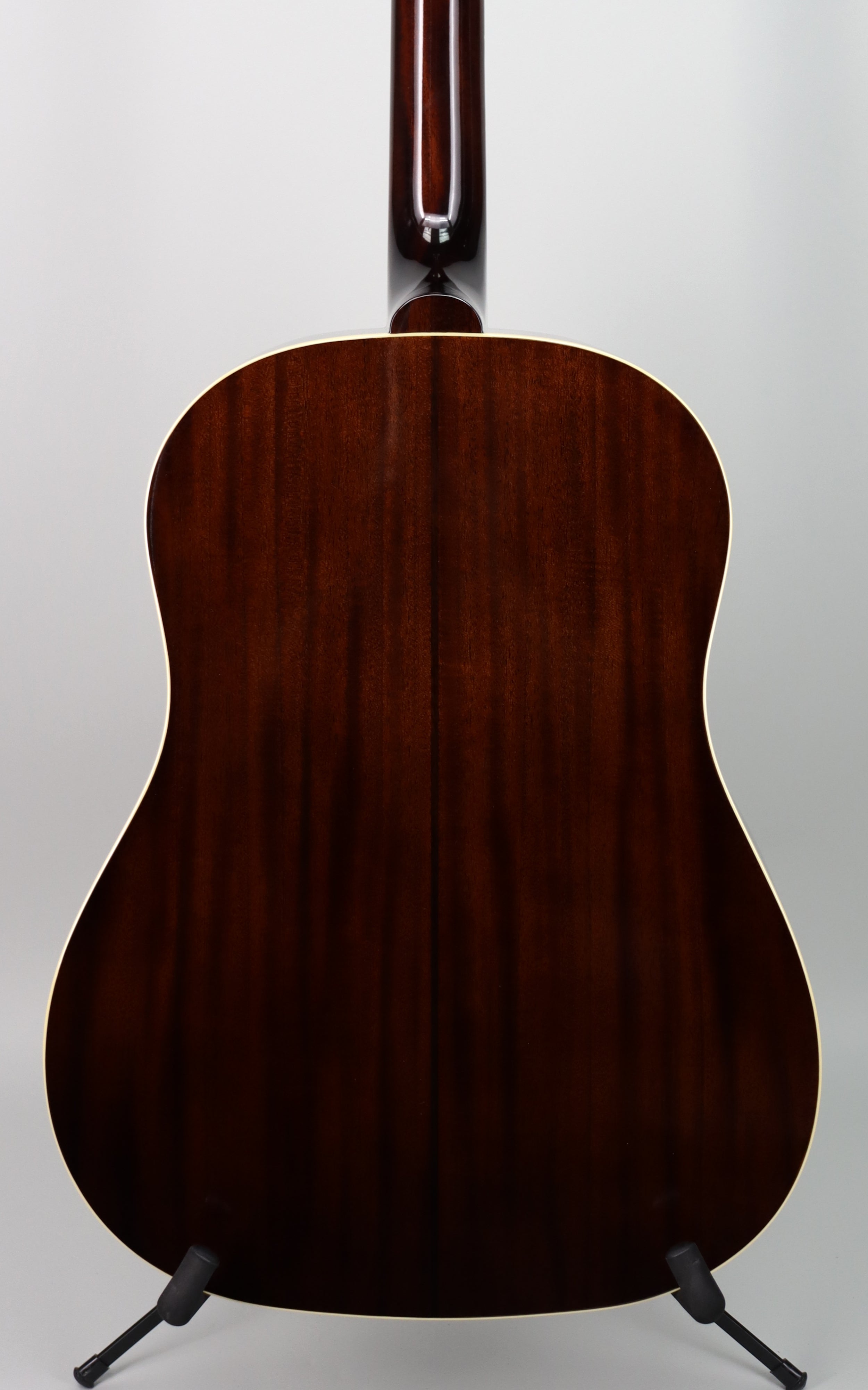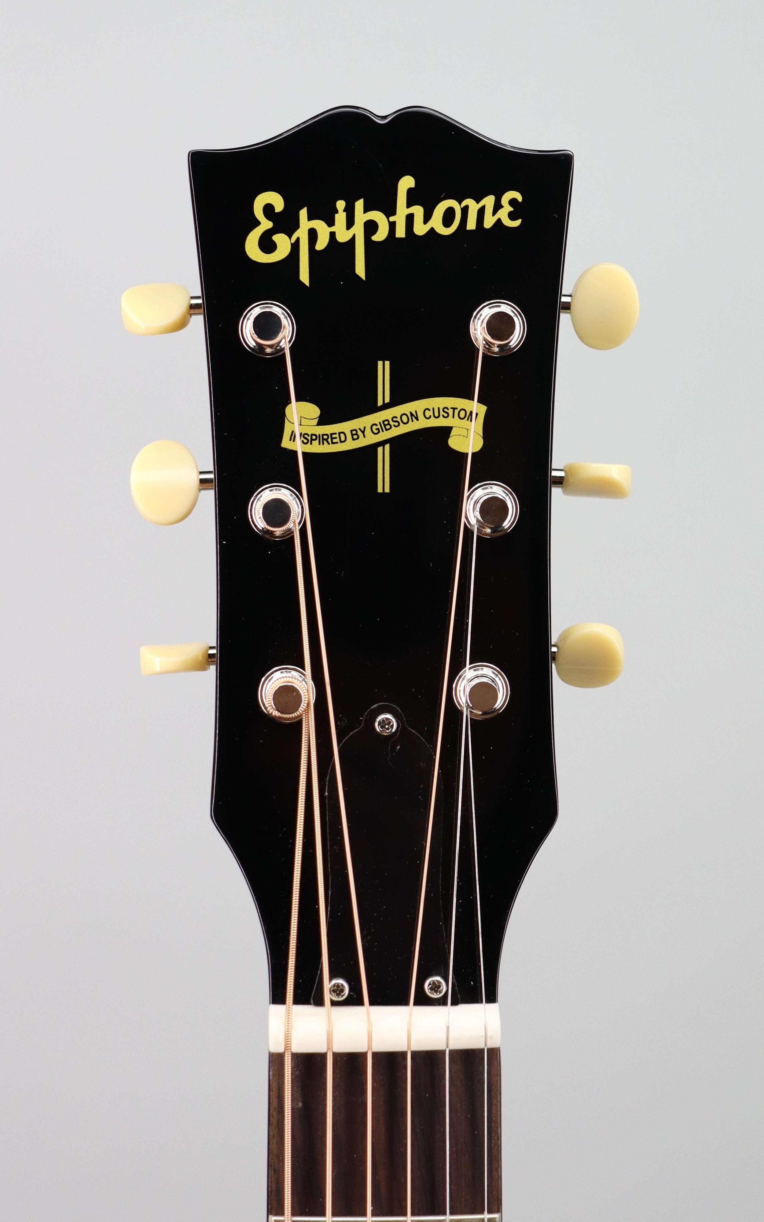Specs: Solid Mahogany back and sides; thermally aged solid spruce top; one-piece Mahogany neck; scalloped X-bracing; single-ply top and back binding; V-shaped neck profile; 12″-radius rosewood fingerboard; bone nut and compensated bone saddle; VOS Vintage Sunburst finish; Epiphone hardshell case with Inspired by Gibson logo.