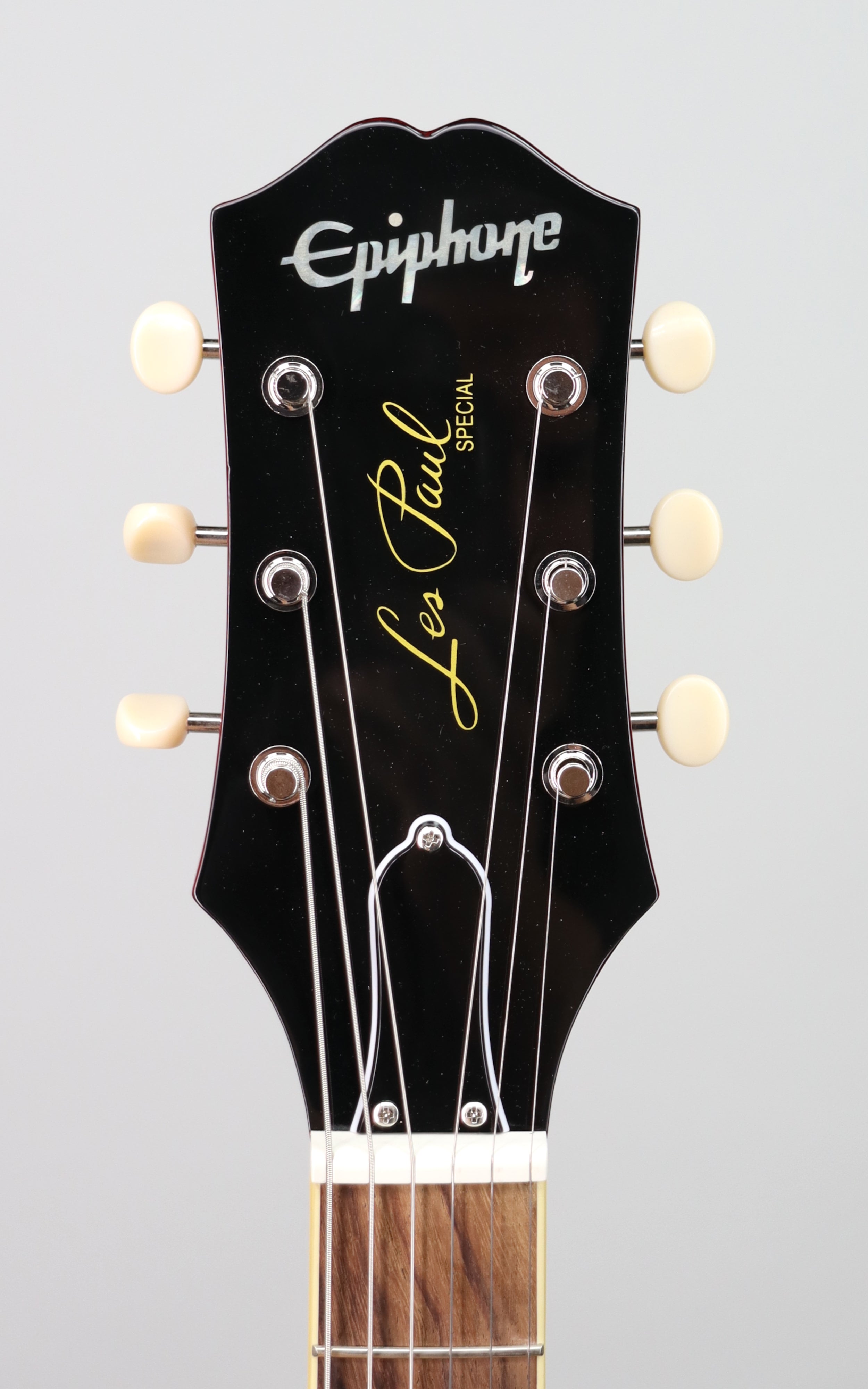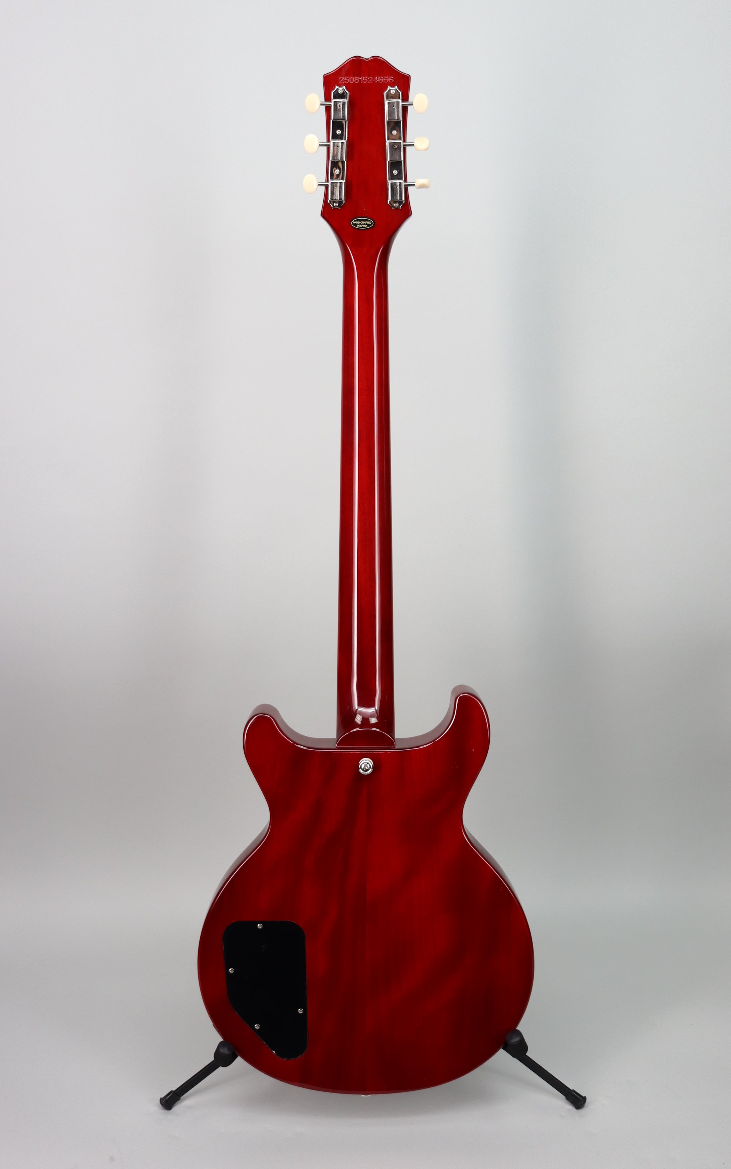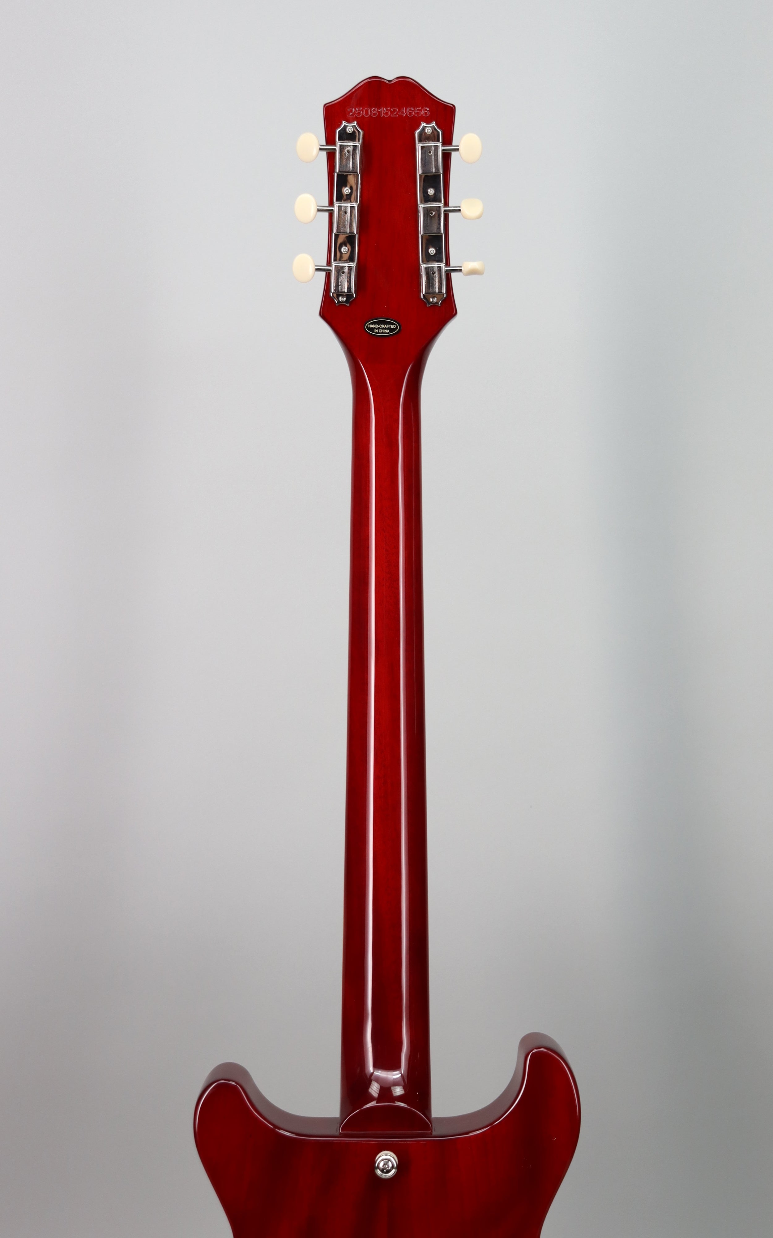 Specs: Mahogany body; mahogany set neck with ’60s SlimTaper™ profile; rosewood fingerboard; 22 frets; pearloid dot inlays; 24.75" scale length; Graph Tech nut; Epiphone lightning bar compensated wraparound bridge; Epiphone Deluxe three-on-a-plate tuners with ivory buttons; nickel hardware. Cherry Red finish. Premium gig bag included.