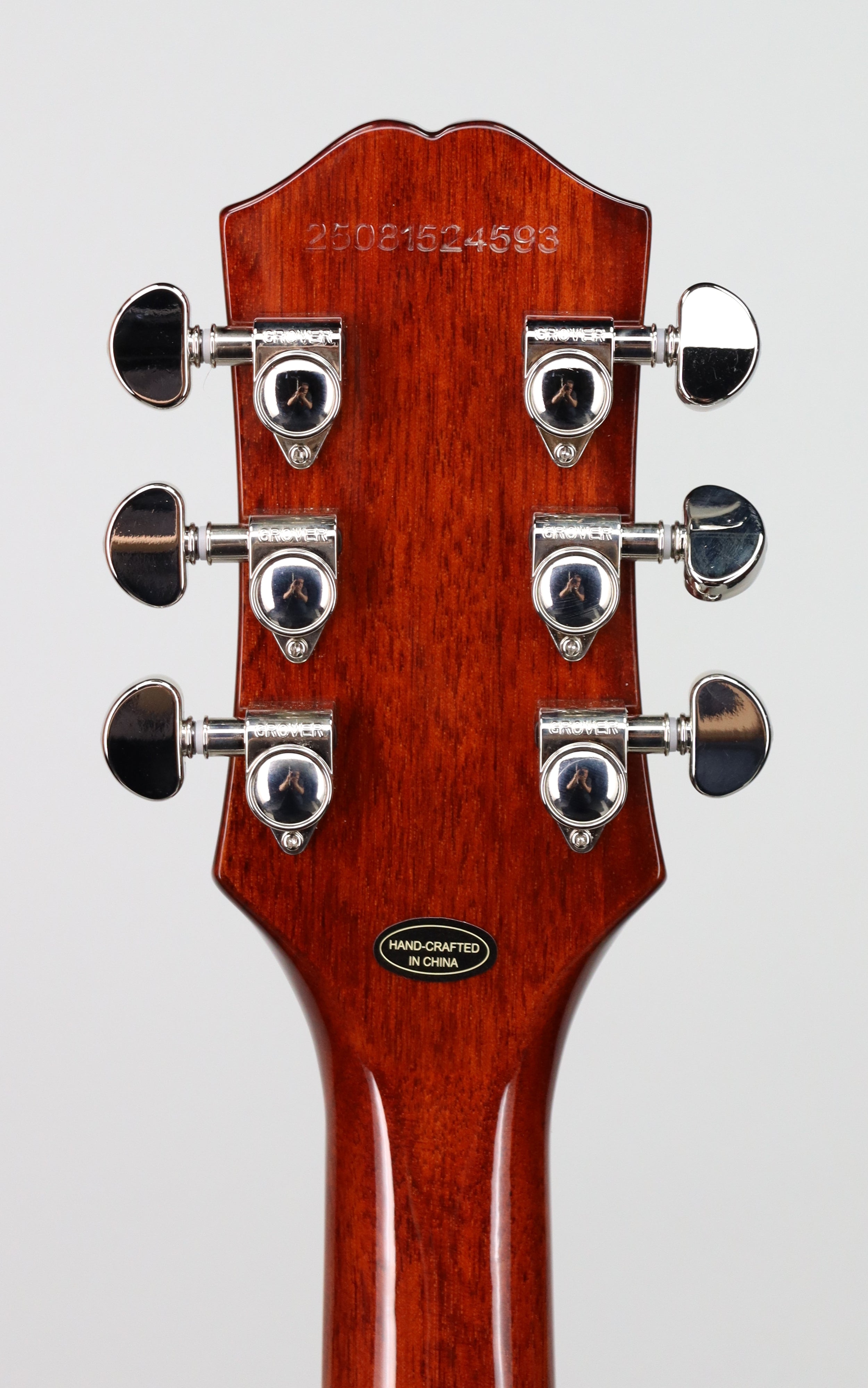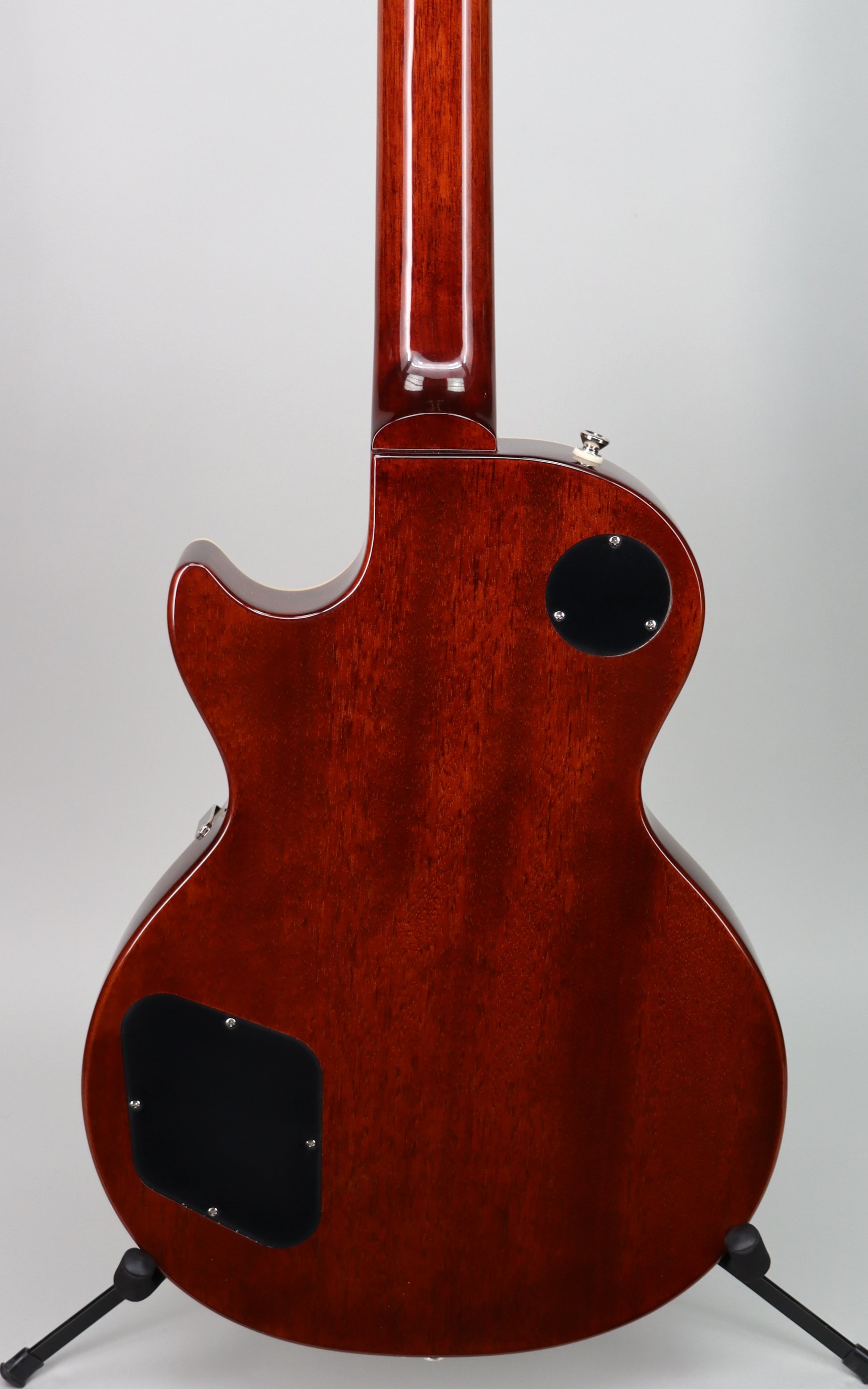 Specs: Mahogany Les Paul body with maple top and highly figured maple veneer; mahogany neck with SlimTaper™ 60s C profile; bound rosewood fingerboard; 22 frets; pearloid trapezoid inlays; 24.75" scale length; 1.69" Graph Tech® nut; LockTone™ Tune-O-Matic bridge and LockTone™ stop bar tailpiece; Grover® Rotomatic® tuners with kidney buttons; nickel hardware. Iced Tea Burst finish. Premium gig bag.