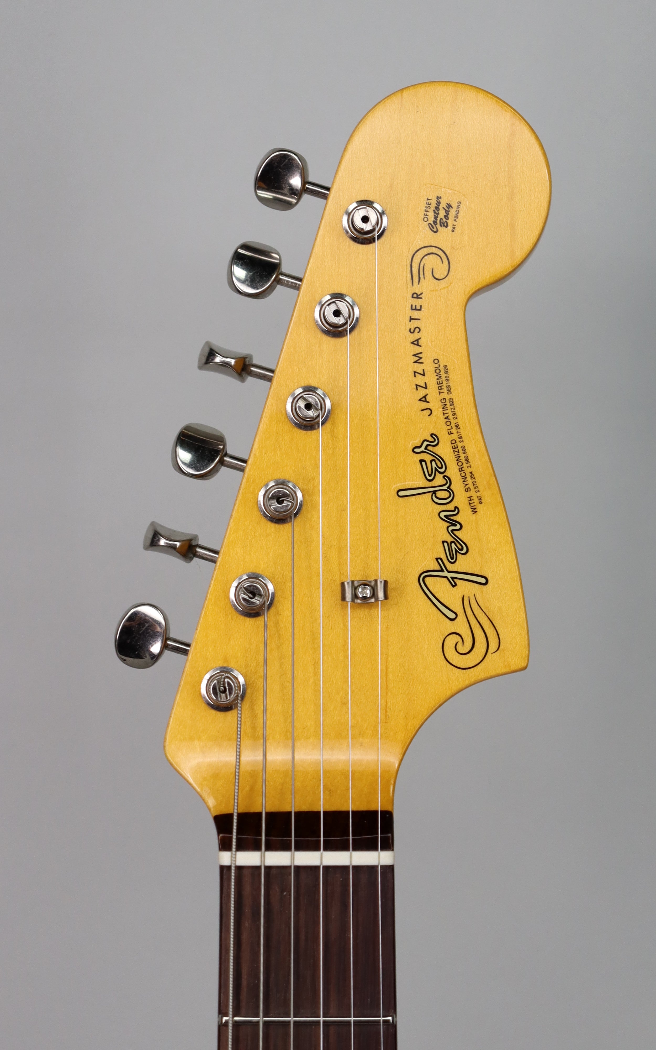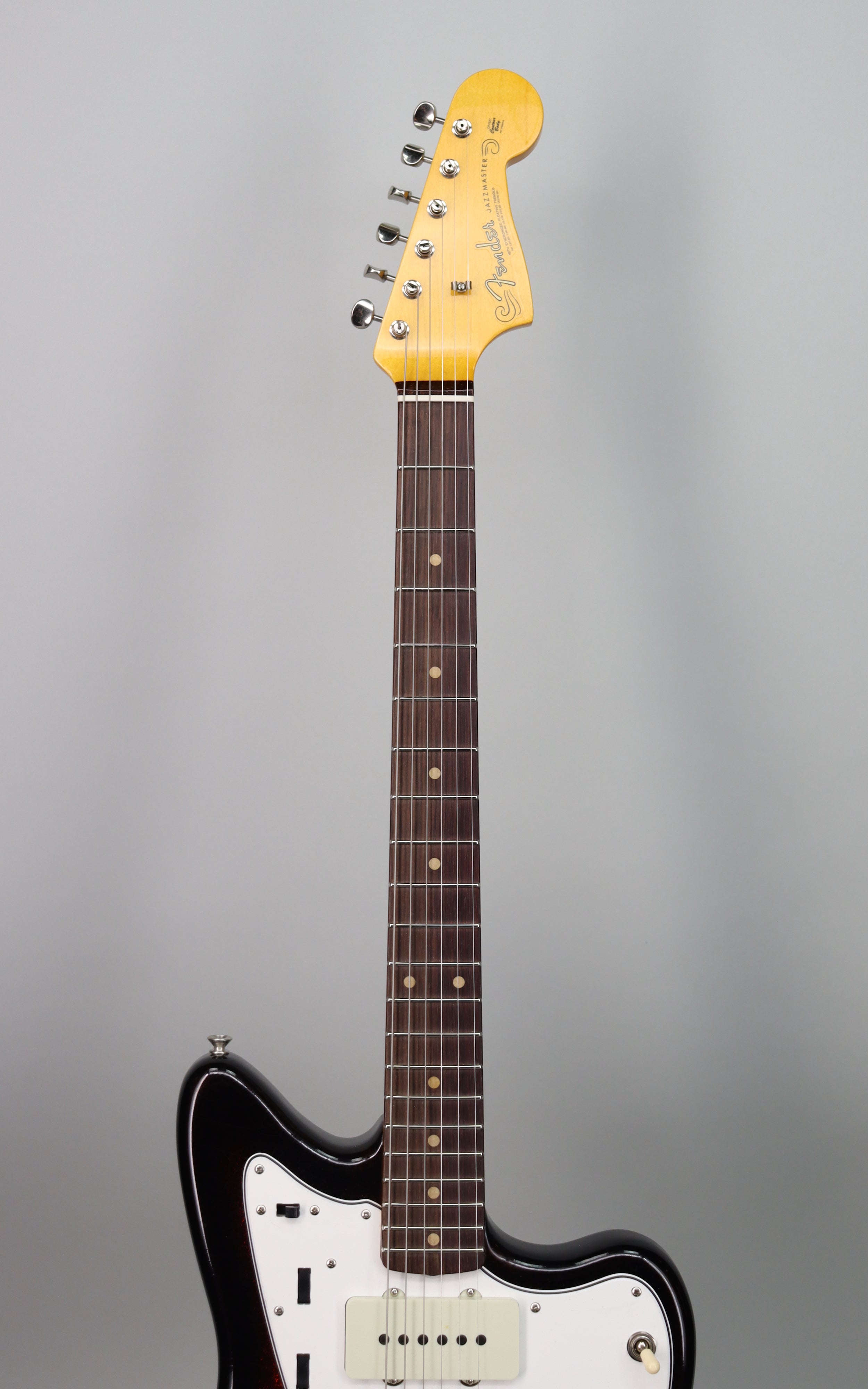 Electronics: Hand-wound Jazzmaster flat-magnet single-coil pickups (neck and bridge); master volume and master tone controls with vintage white knobs; rhythm/lead circuit switching; no middle pickup.