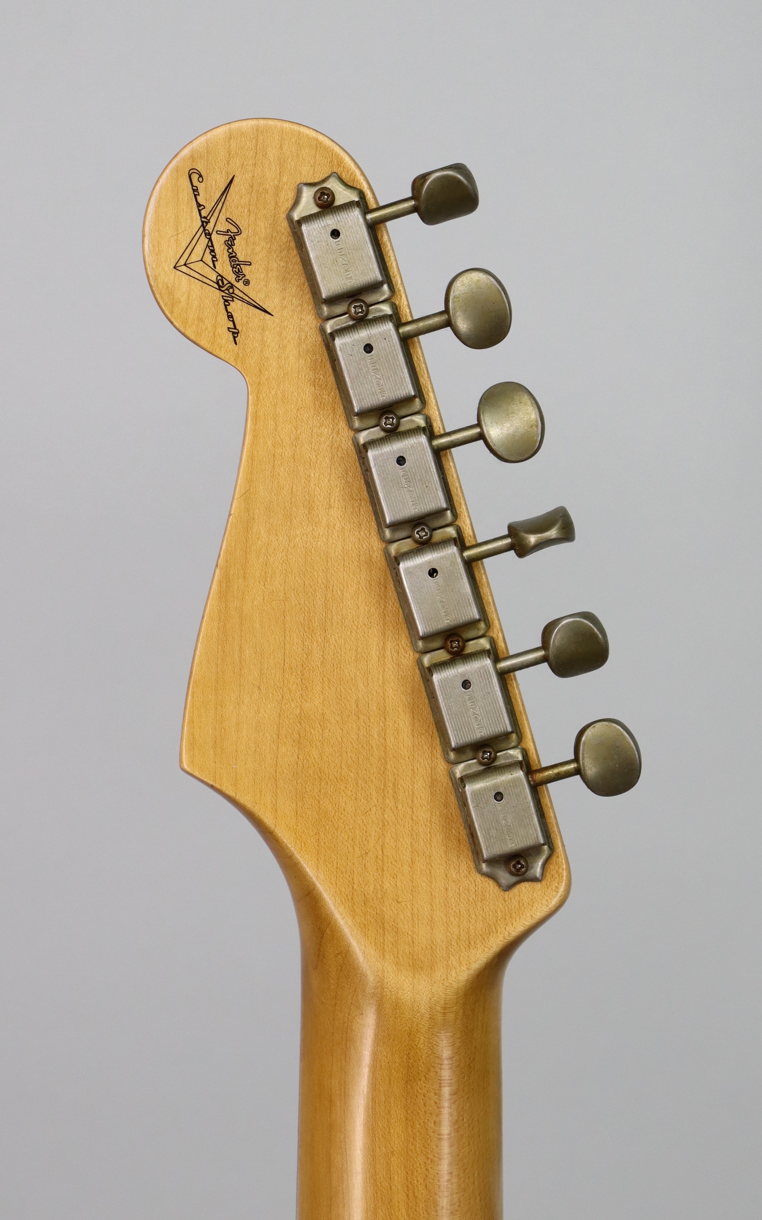This Fender Custom Shop Dealer Select ’62 Stratocaster HSS Journeyman Relic in Aged Black is one of Detroit Guitar’s exclusive Dealer Select builds—made only for Detroit Guitar and featuring a set of very special specs. At its core are custom Hand-Wound ’62 Strat single-coil pickups (DG62S),in the middle and neck position for a perfectly balanced tonal palette. The bridge pickup is a Shawbucker humbucker. Additional enhancements include truss rod access through the headstock, modern string spacing, a push/push tone control that allows the bridge and neck pickups to be engaged together, a versatile swimming pool routing with full wire shielding, and an adjusted ’60s Oval “C” neck carve measuring .810”–.940” for authentic yet refined feel.