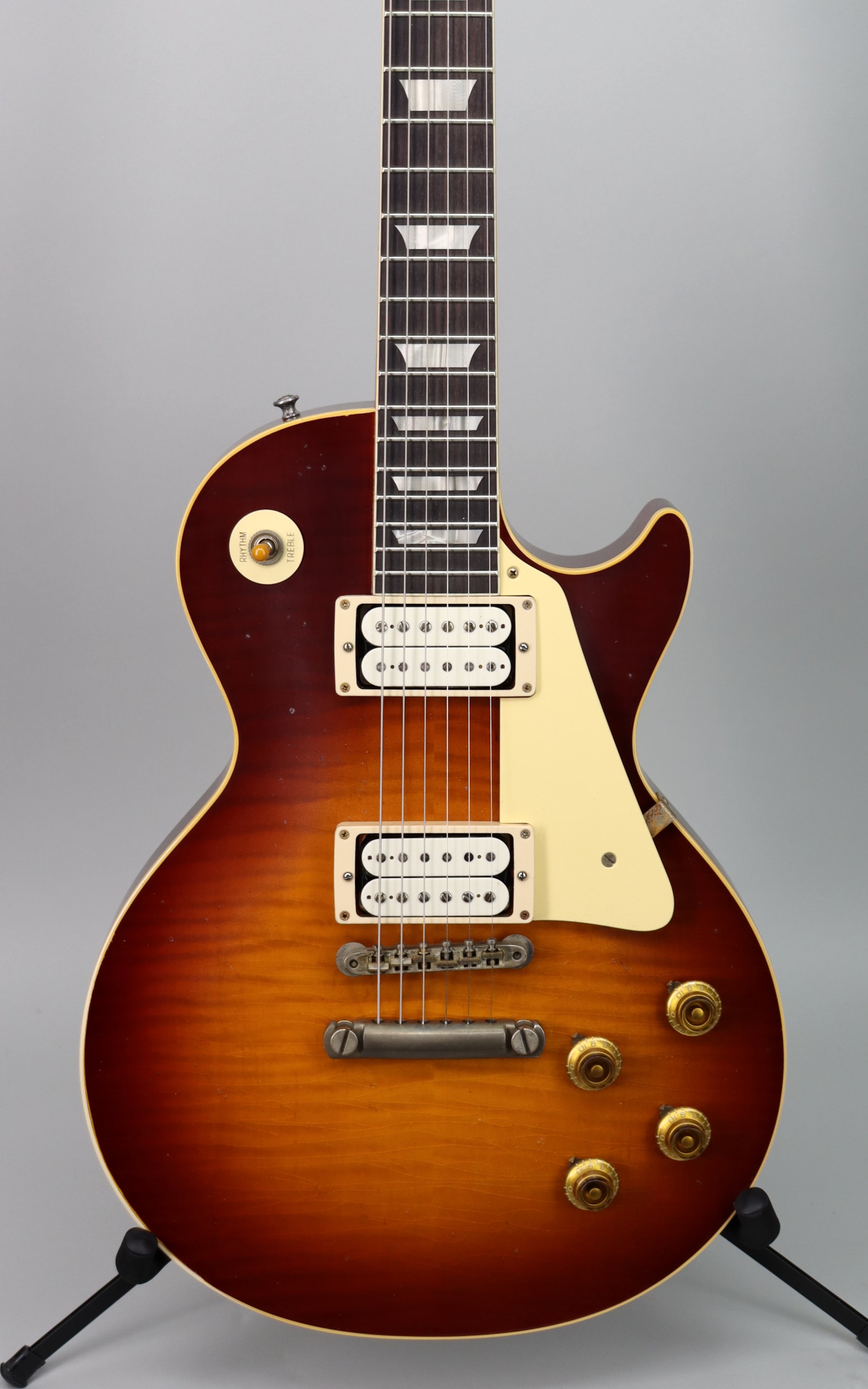 Specs: 2-piece AAA-grade figured maple top; 1-piece lightweight mahogany body; mahogany Authentic 1959 Medium C profile neck; Indian rosewood fingerboard; 22 medium-jumbo frets; 24.75" scale; 12" radius; 1.687" nylon nut; historic 59 ABR-1 bridge and stopbar tailpiece; Kluson Deluxe SD90 tuners. Nitrocellulose lacquer Beauty of the Burst #78 Murphy Lab Light Aged finish. Hardshell case included.