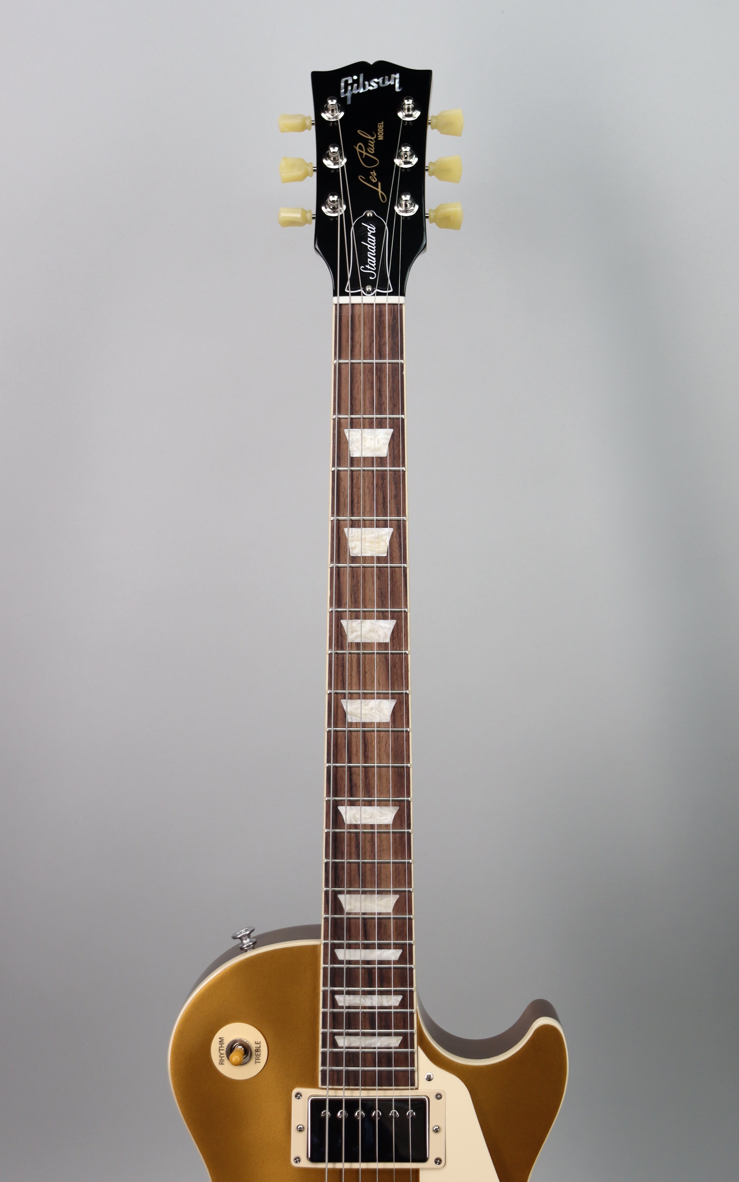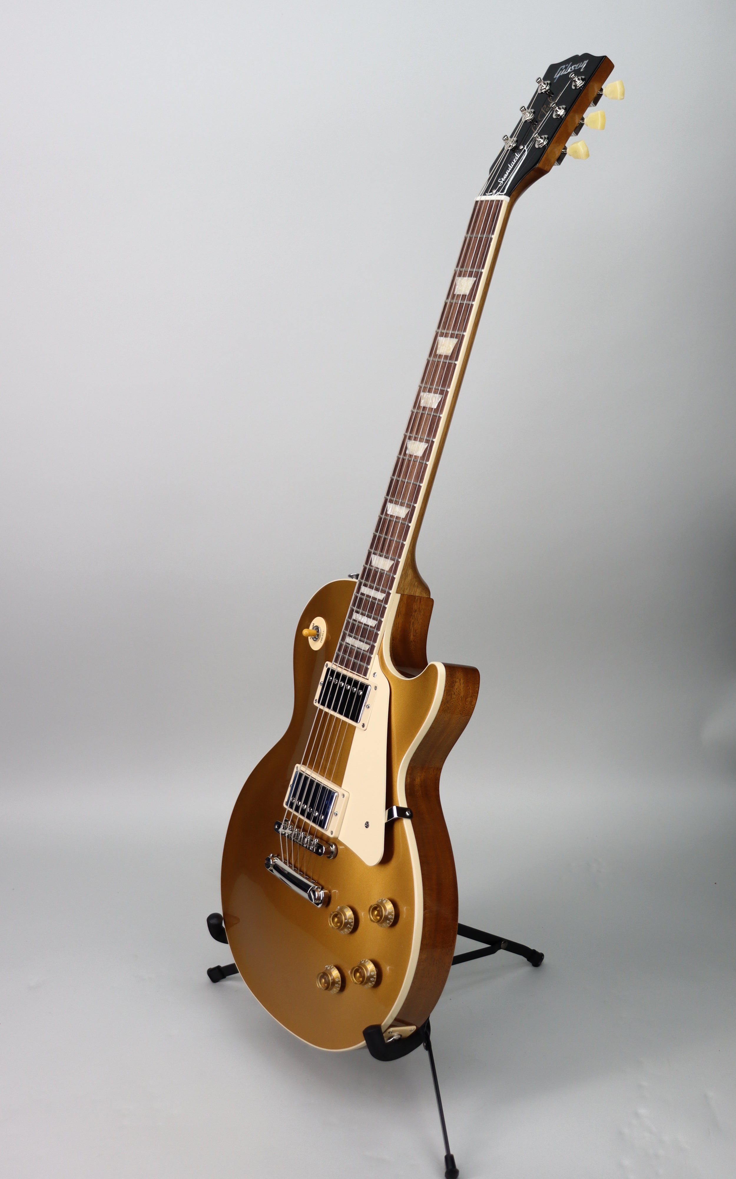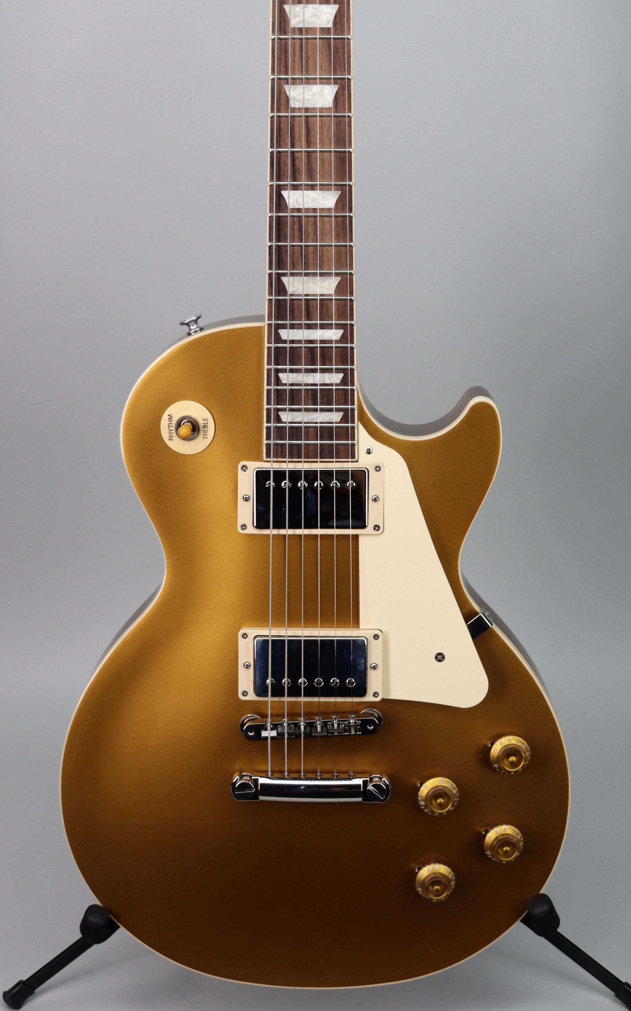 Specs: Maple top; mahogany body; mahogany Vintage '50s neck; 24.75" scale length; rosewood fingerboard; 12" fingerboard radius; 22 medium jumbo frets; 1.69" nut width; ABR-1 tune-o-matic bridge with aluminum stop bar tailpiece. Nitrocellulose lacquer Gold Top finish.