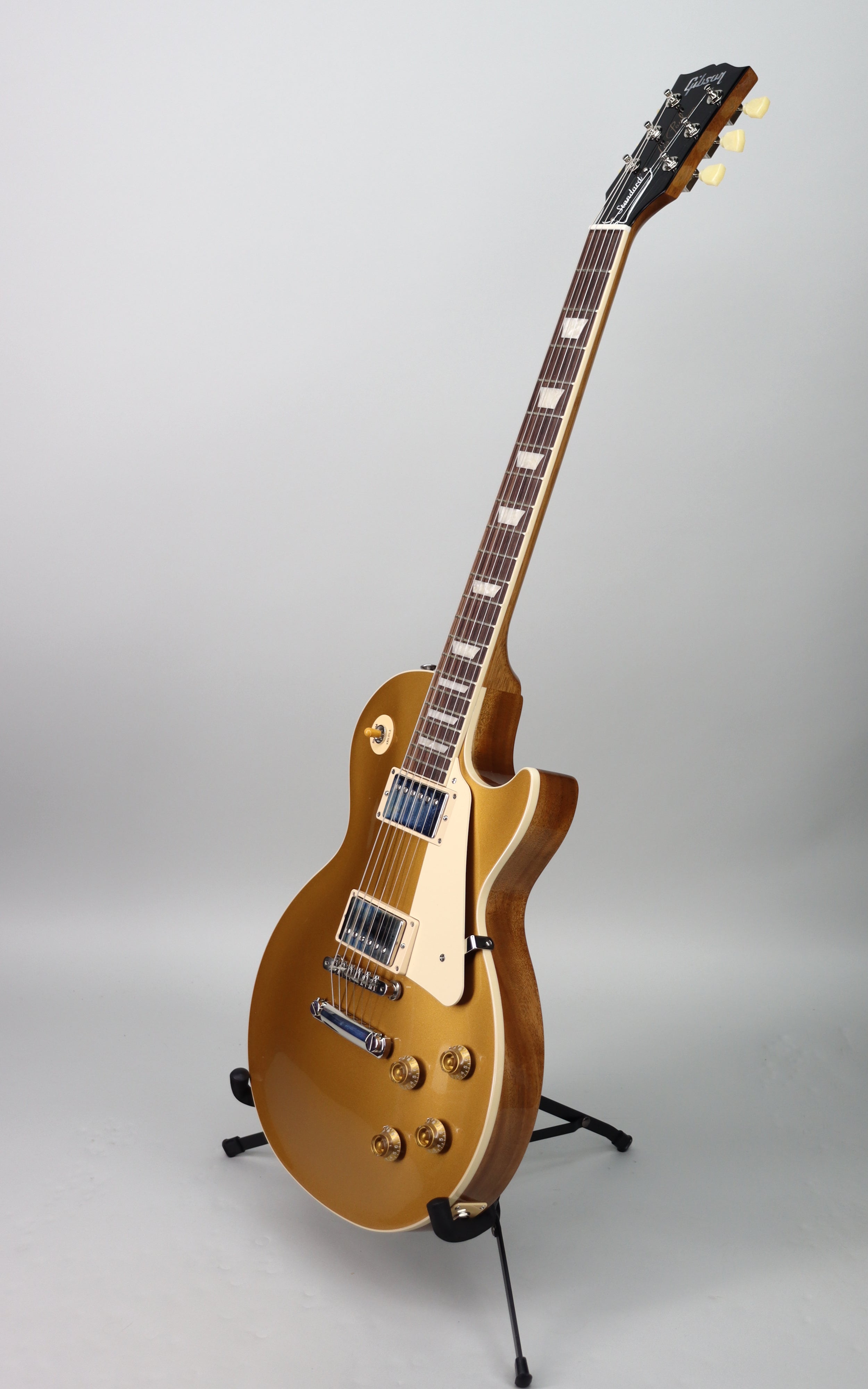 Specs: Maple top; mahogany body; mahogany Vintage '50s neck; 24.75" scale length; rosewood fingerboard; 12" fingerboard radius; 22 medium jumbo frets; 1.69" nut width; ABR-1 tune-o-matic bridge with aluminum stop bar tailpiece. Nitrocellulose lacquer Gold Top finish.