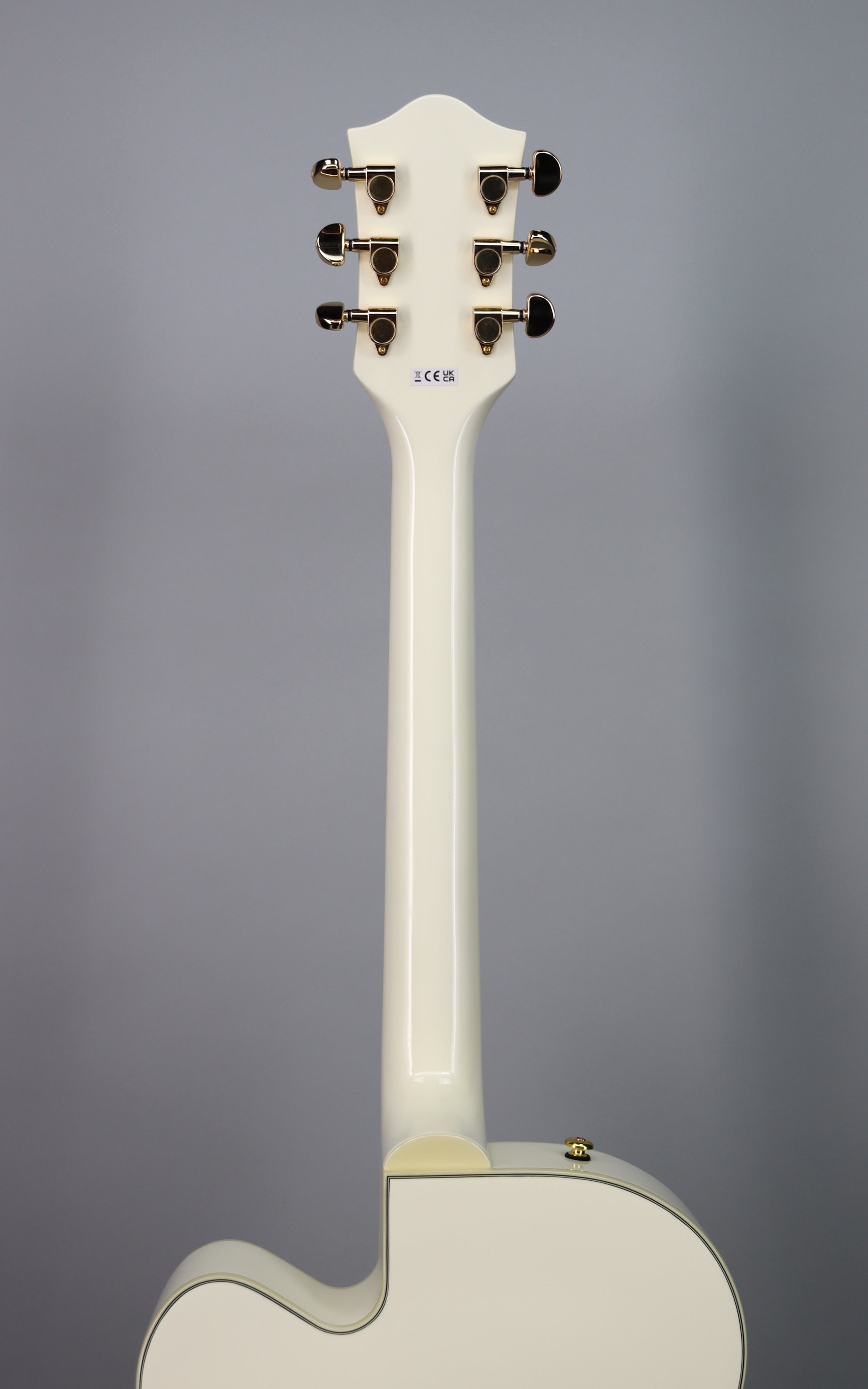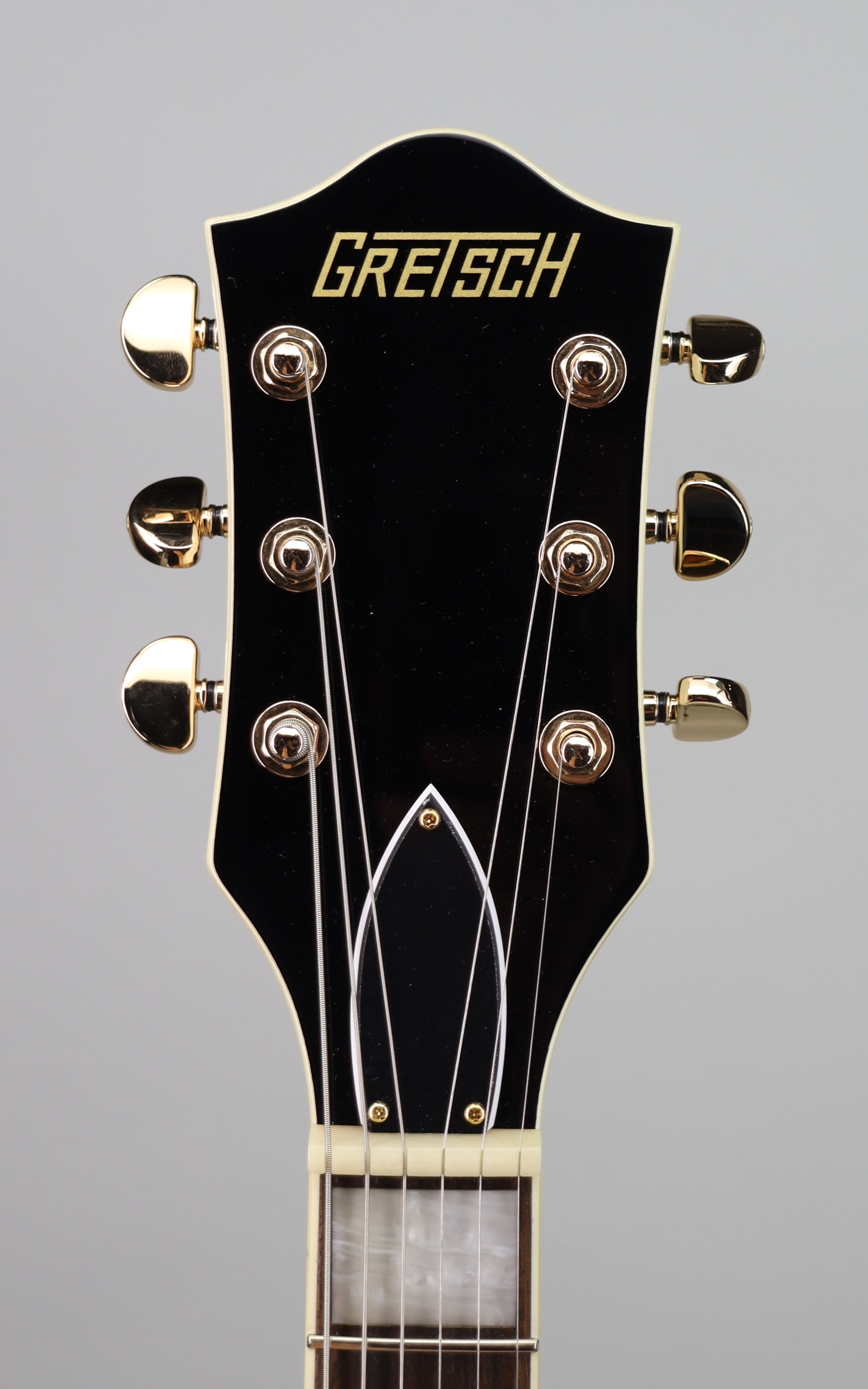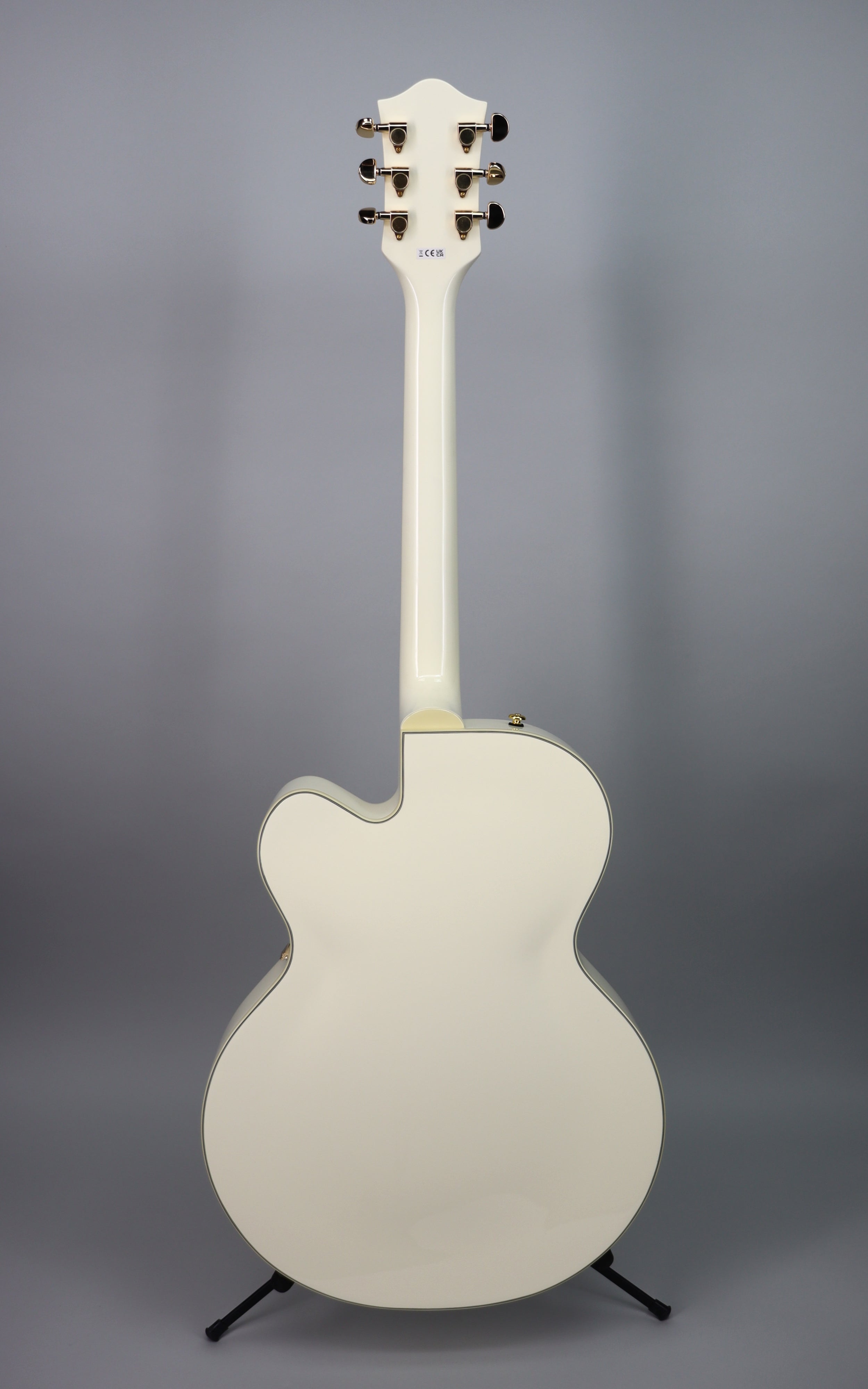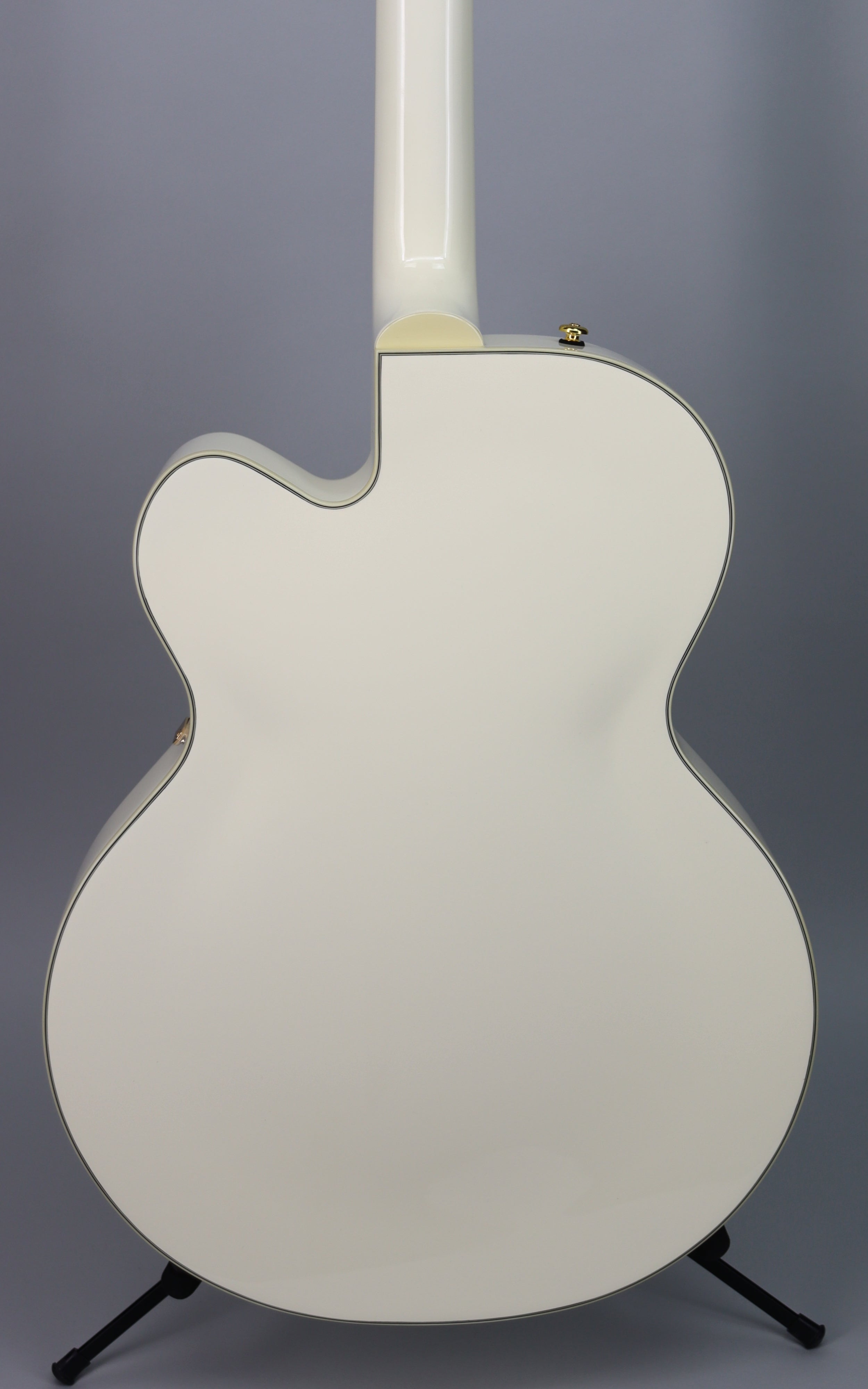 Specs: Laminated maple hollow body with arched laminated maple top and arched laminated maple back; parallel tone bar bracing; single cutaway Streamliner body shape; nato set-neck with gloss finish and soft “C” profile; 24.75" scale length; laurel fingerboard with 12" radius, pearloid Big Block inlays and 22 medium jumbo frets; 1.6875" bone nut; Adjusto-Matic bridge with secured laurel base; Bigsby B60 tailpiece; gold hardware with die-cast sealed tuning machines, G-Arrow control knobs and 3-ply black pickguard. Gloss Vintage White finish.