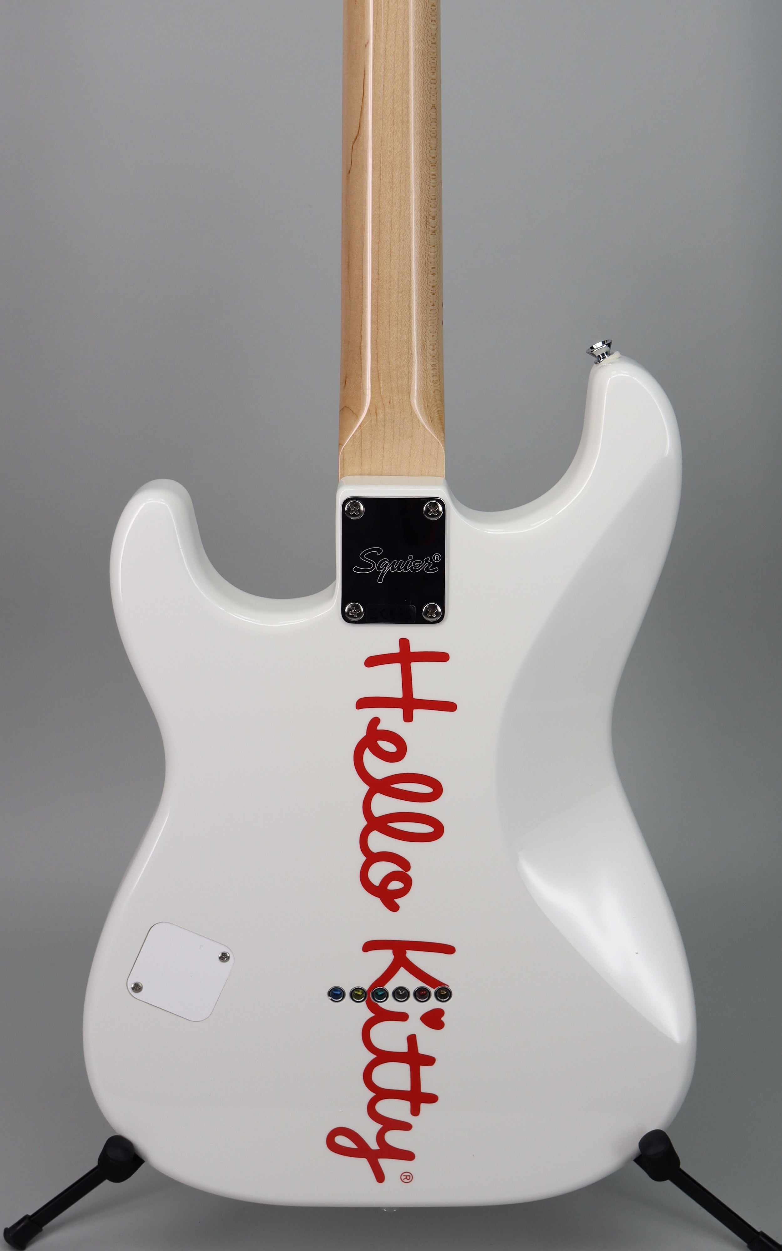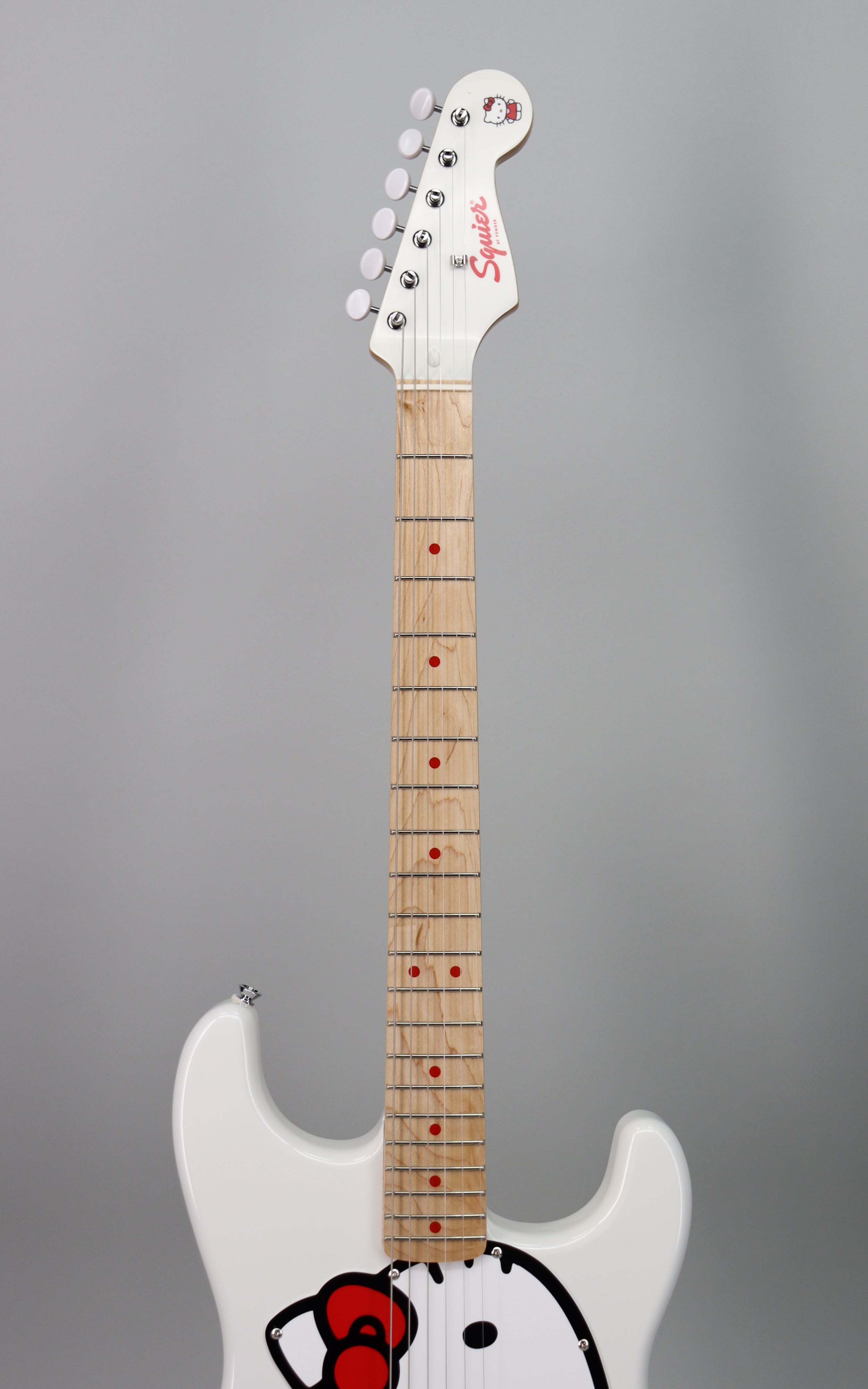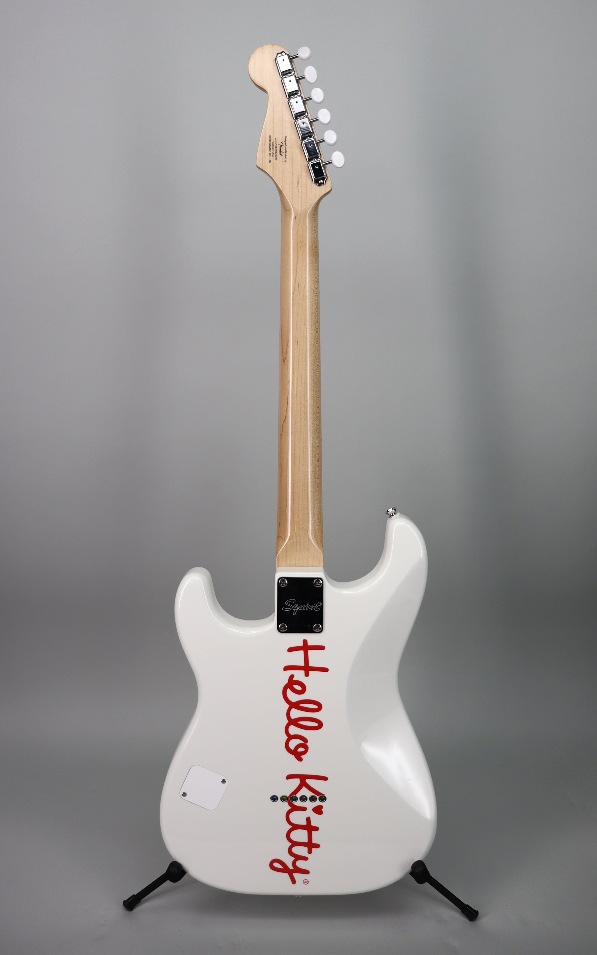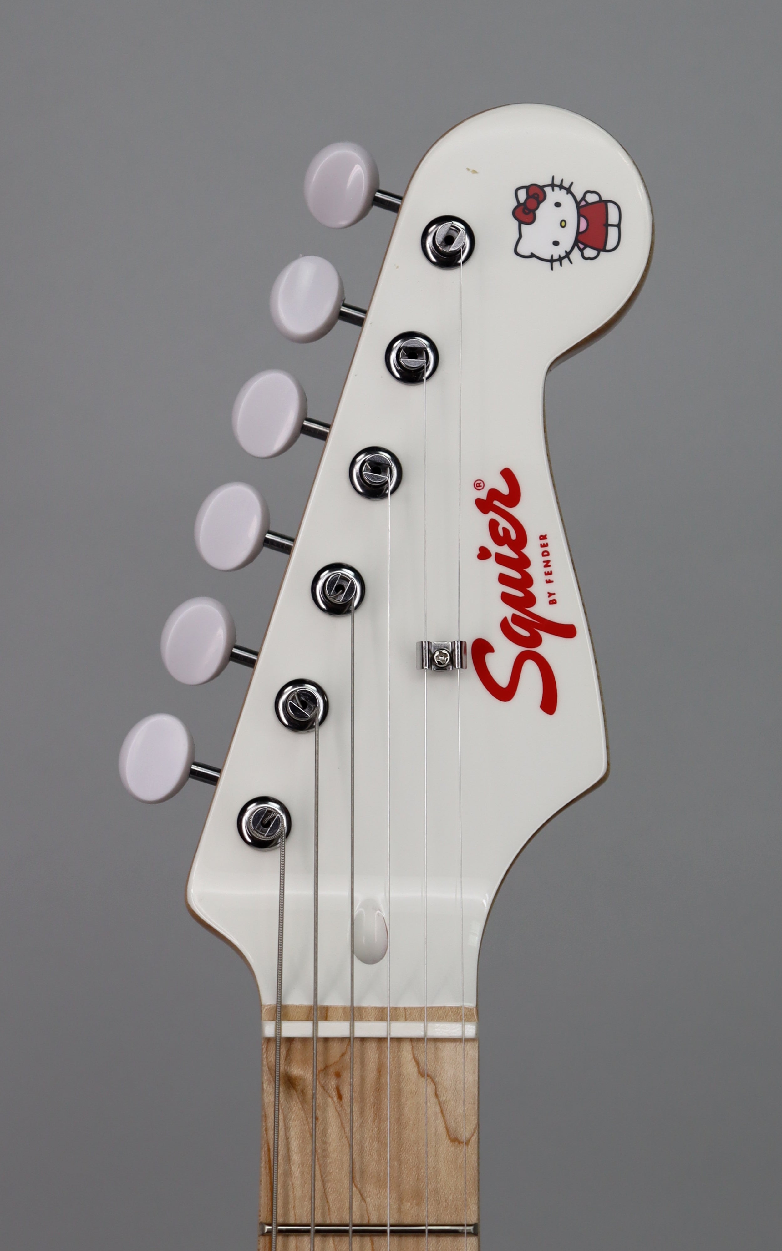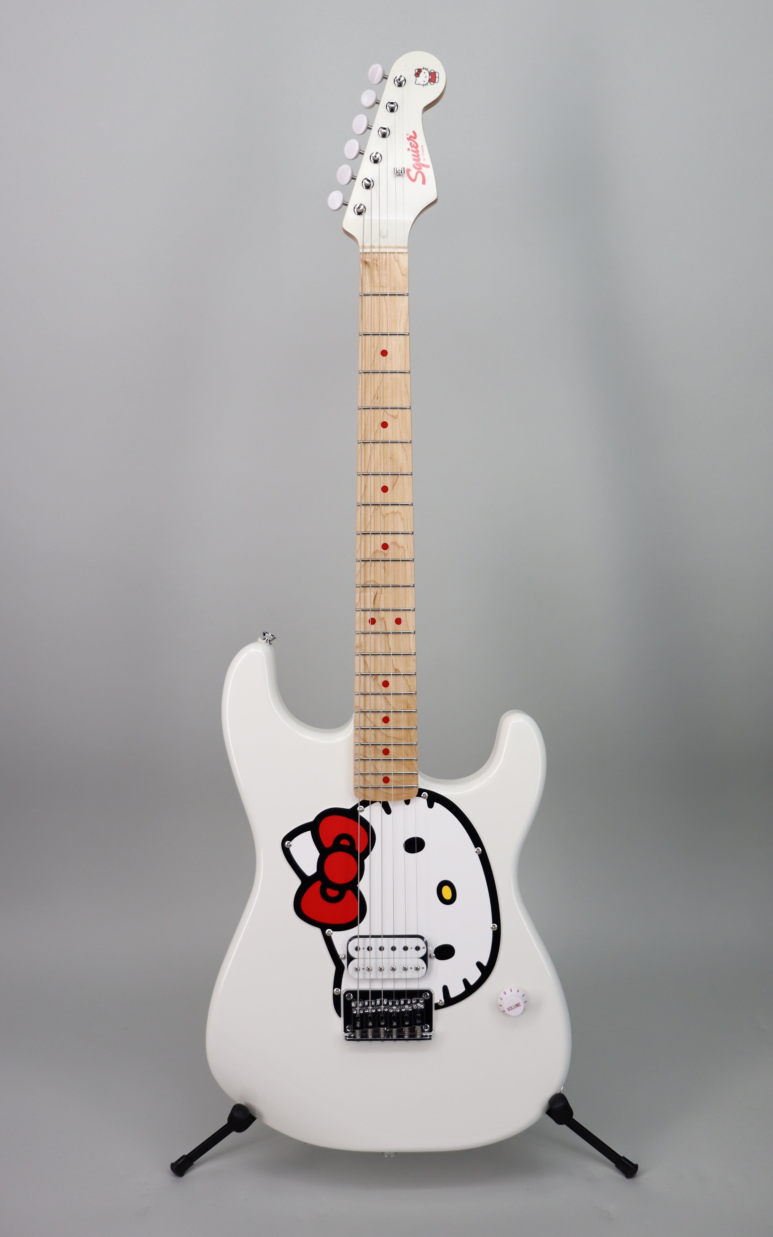 Specs: Okoume body; maple “C”-shape neck; maple fingerboard; 9.5” fingerboard radius; 25.5” scale length; 21 narrow tall frets; synthetic bone nut; 1.650" nut width; 6-saddle strings-through-body hardtail bridge; vintage-style tuners with white buttons; chrome hardware; matching painted headstock; 1-ply ABS pickguard with custom Hello Kitty graphic. Gloss polyurethane White finish. Deluxe Hello Kitty gig bag included.