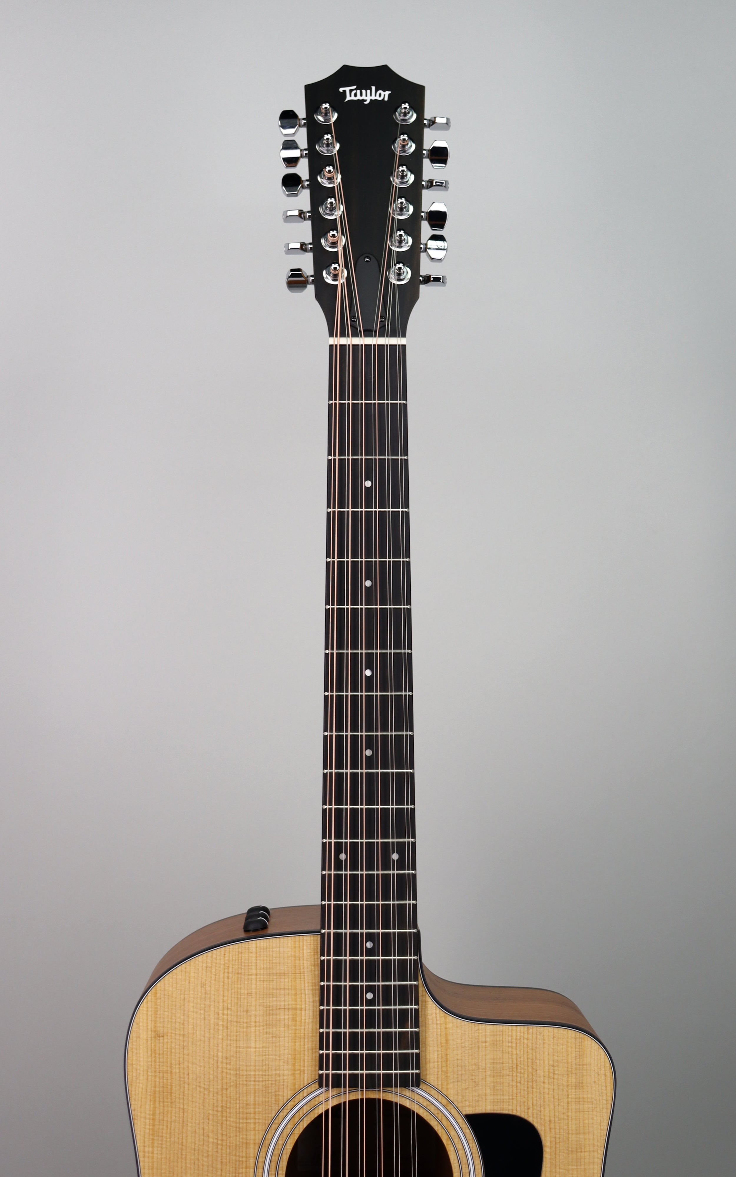 The Taylor 150ce delivers one of the world’s most popular 12‑string experiences in the 100 Series—featuring a traditional Dreadnought body with Venetian cutaway, a slender neck for effortless playability, and a solid torrefied spruce top that offers rich octave shimmer, clarity across the tonal spectrum, and a powerful low‑end response—all wrapped up at an accessible price point.