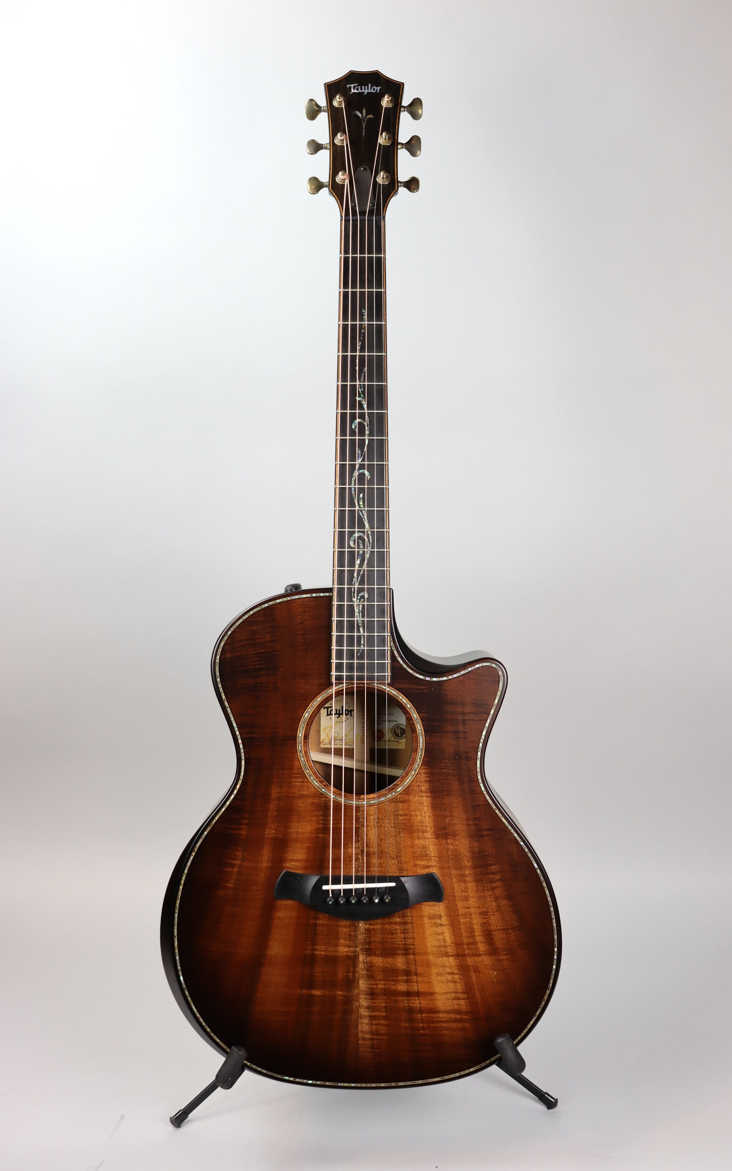 Electronics: Taylor Expression System® 2 (ES2) pickup and preamp with soundhole-mounted controls for clear, balanced amplified acoustic tone.