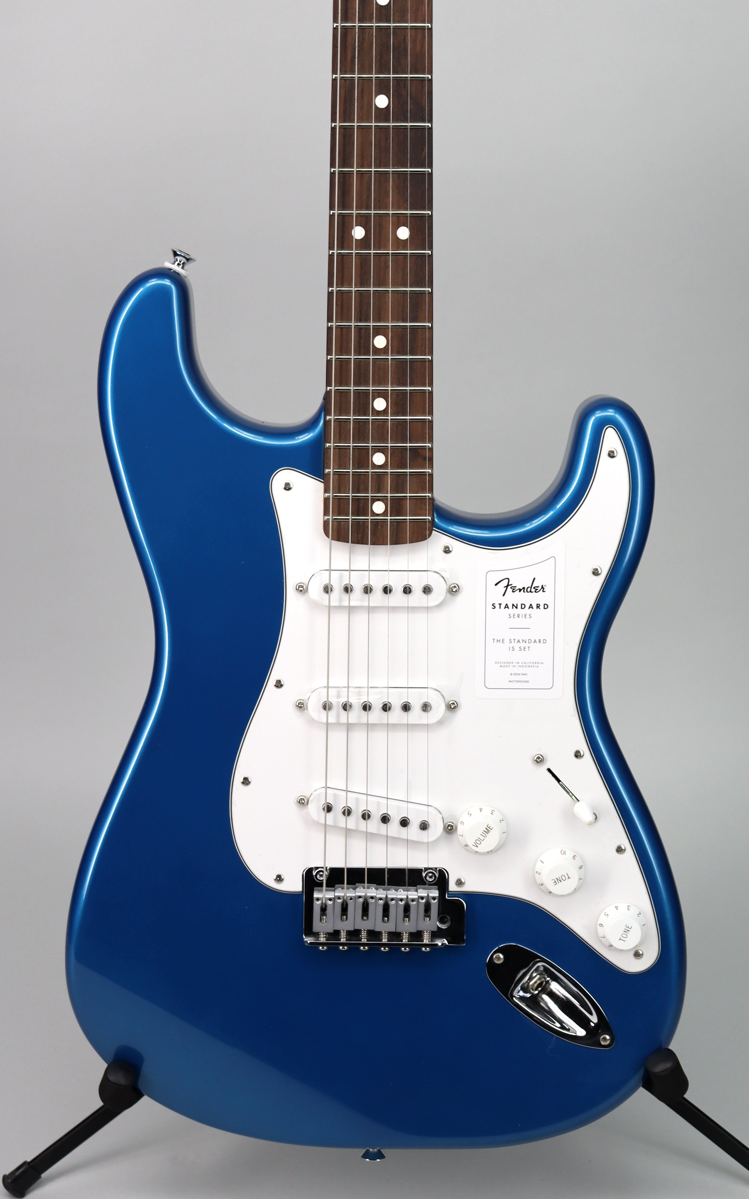 Built to accompany players on their formative musical adventures, the Fender Standard Stratocaster delivers the approachable playability and inspiring tone that made Fender an icon of rock & roll. Powered by a set of Fender Standard pickups for high-output sonic character and an inviting “Modern C”-shaped neck for superior playing comfort, this Strat truly sets the standard for the Fender experience.