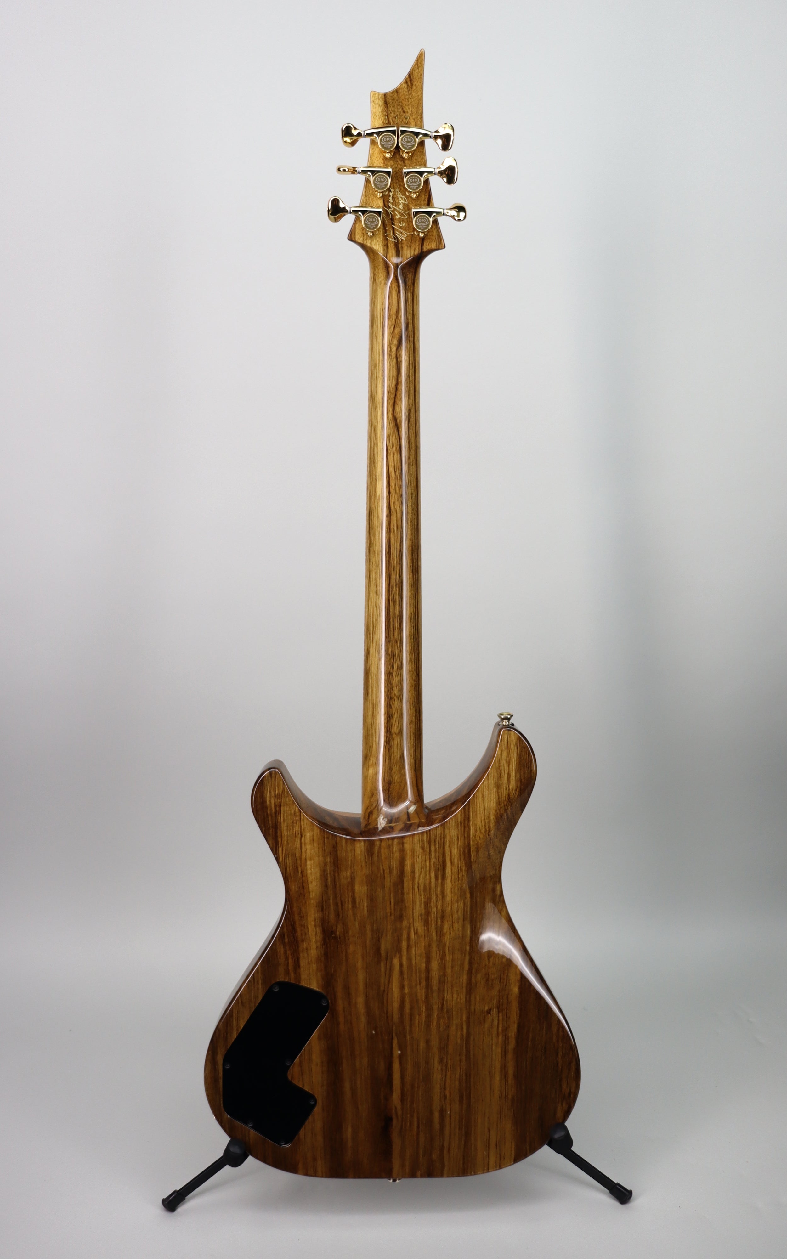 Built around a mahogany body and a fast 24.75" scale, the Growler TM pairs a roasted maple neck with an ebony fingerboard and stainless steel frets for a smooth, responsive feel and long-term durability. A Hipshot hardtail bridge keeps things tight and stable, while active EMG pickups provide the focused output and articulation required for modern metal tones. Purpose-built and stage-ready, this signature model is a no-nonsense instrument for players who want precision, power, and reliability.