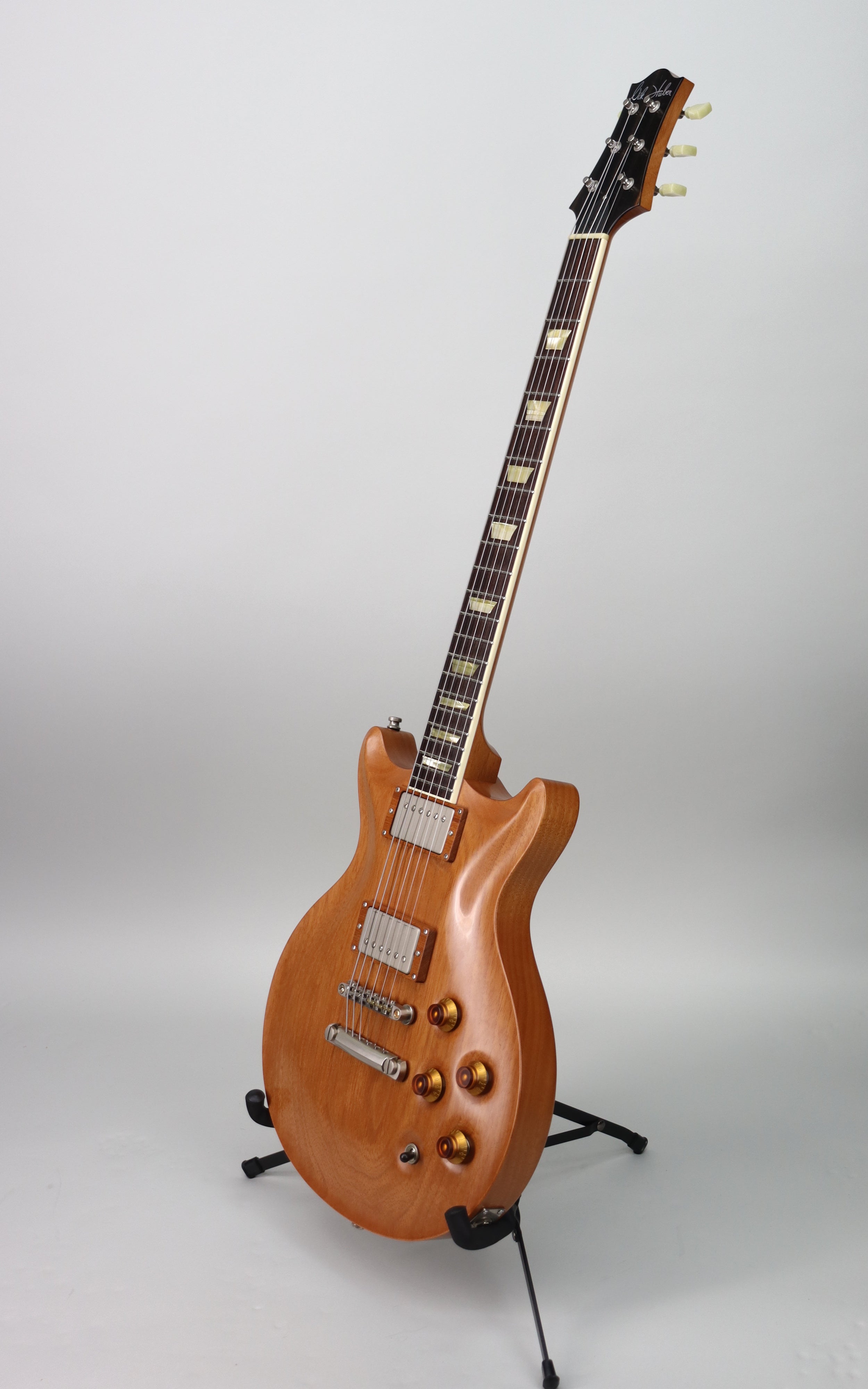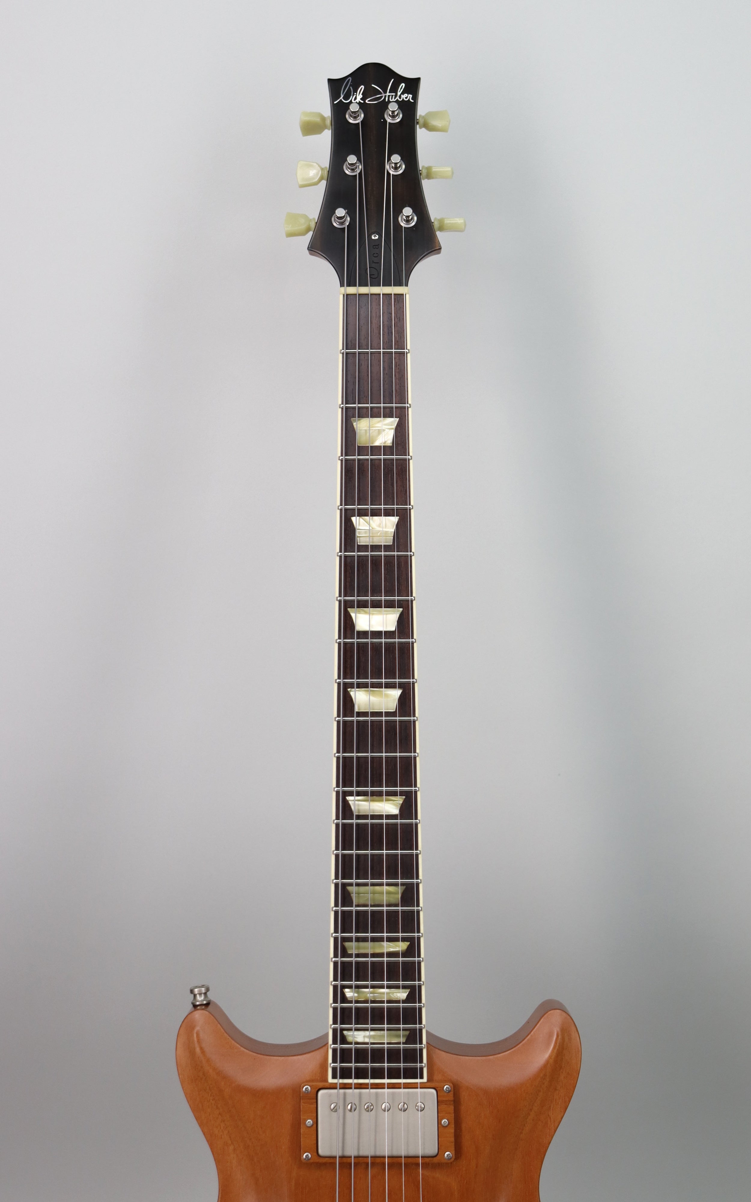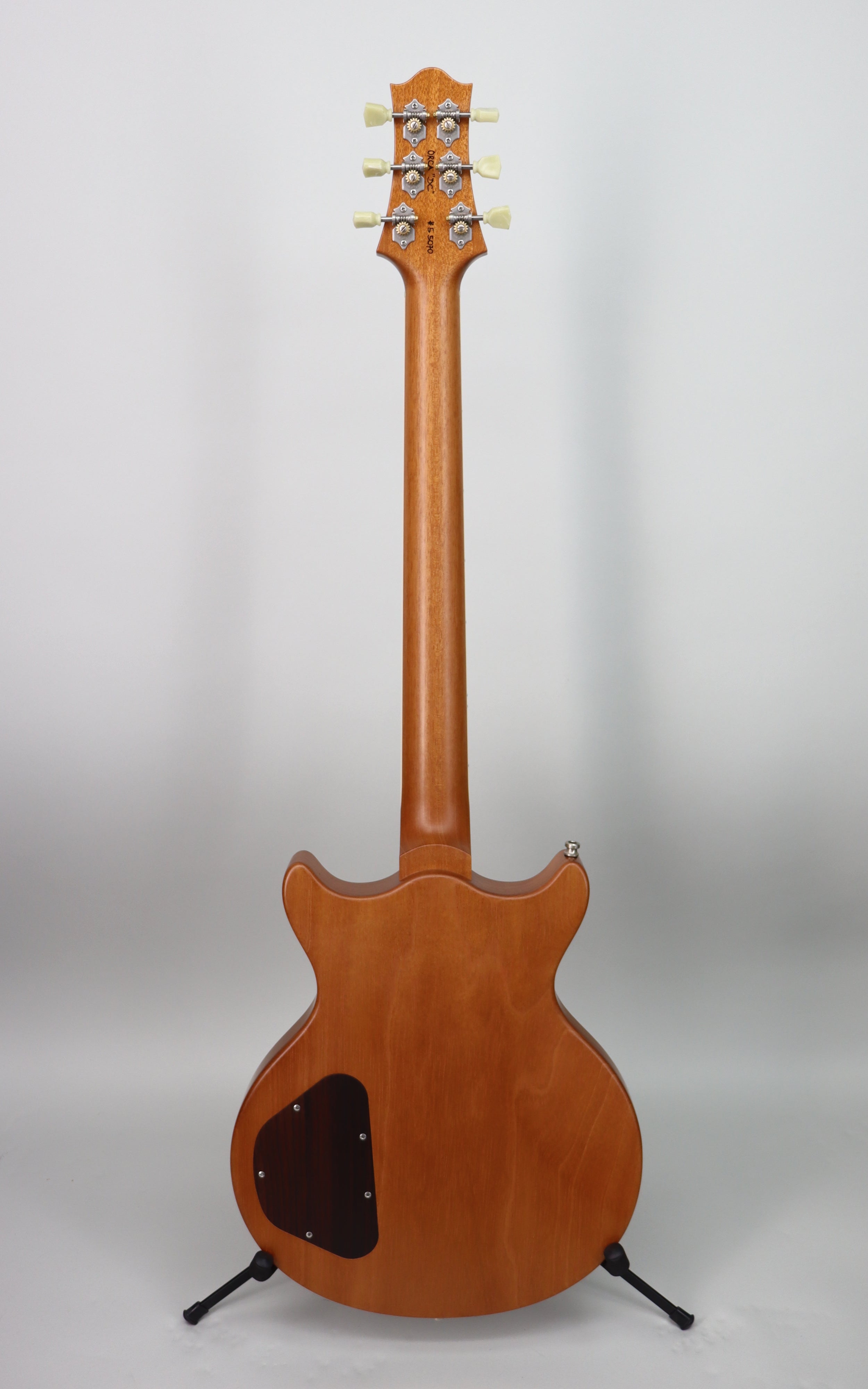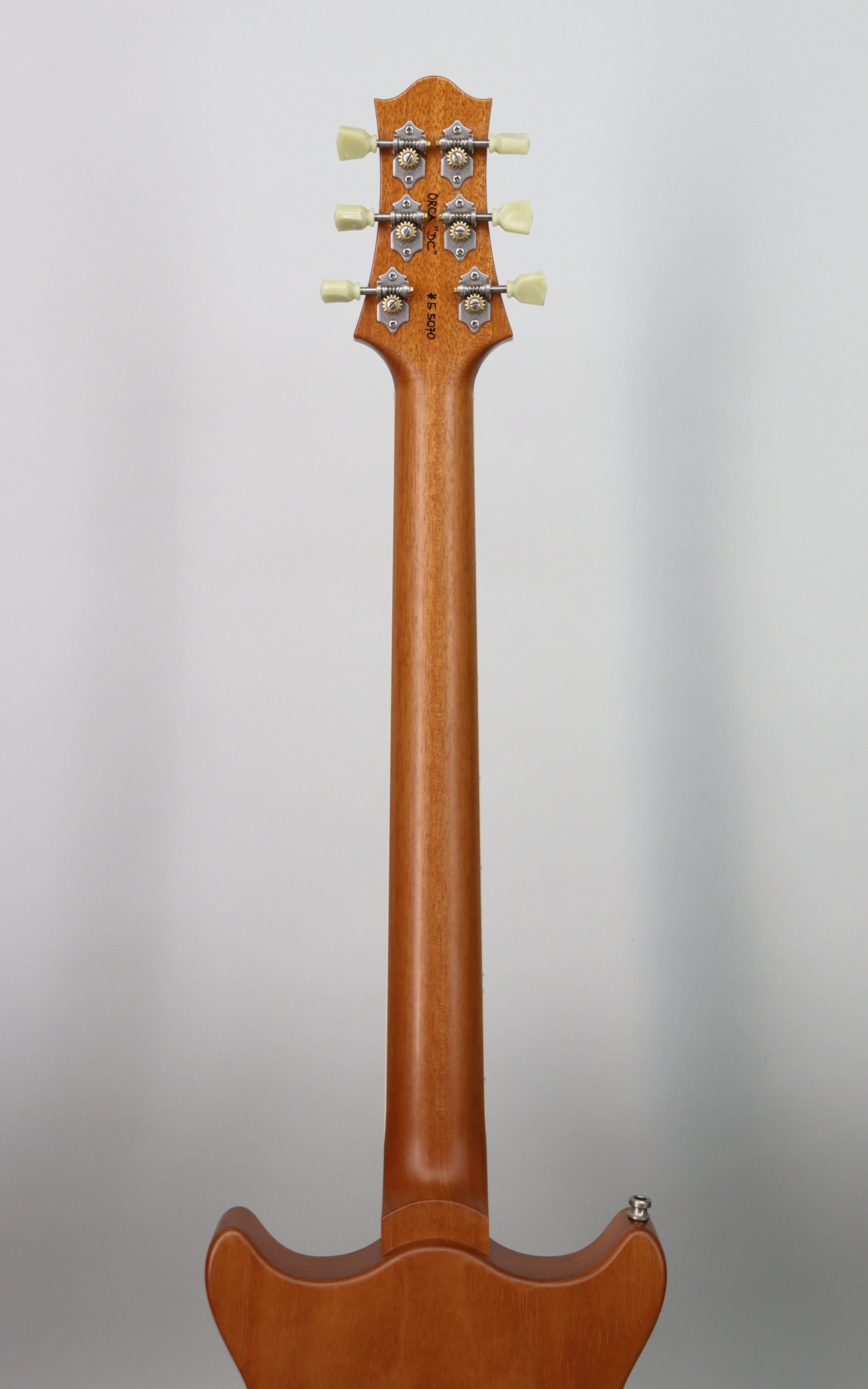 Specs: Spanish cedar body; Spanish cedar neck with Standard DC Orca carve; East Indian rosewood fingerboard with vintage celluloid crown inlays; creme neck binding; ebony headstock veneer with mother-of-pearl signature inlay; Tune-O-Matic bridge with aluminum tailpiece; Gotoh 510 open-gear tuners with keystone/tulip buttons; brushed gold bell knobs with creme brushed switch tip; East Indian rosewood back plate. Natural semi-gloss finish. Hardshell case included. Original Nik Huber certificate of authenticity included.