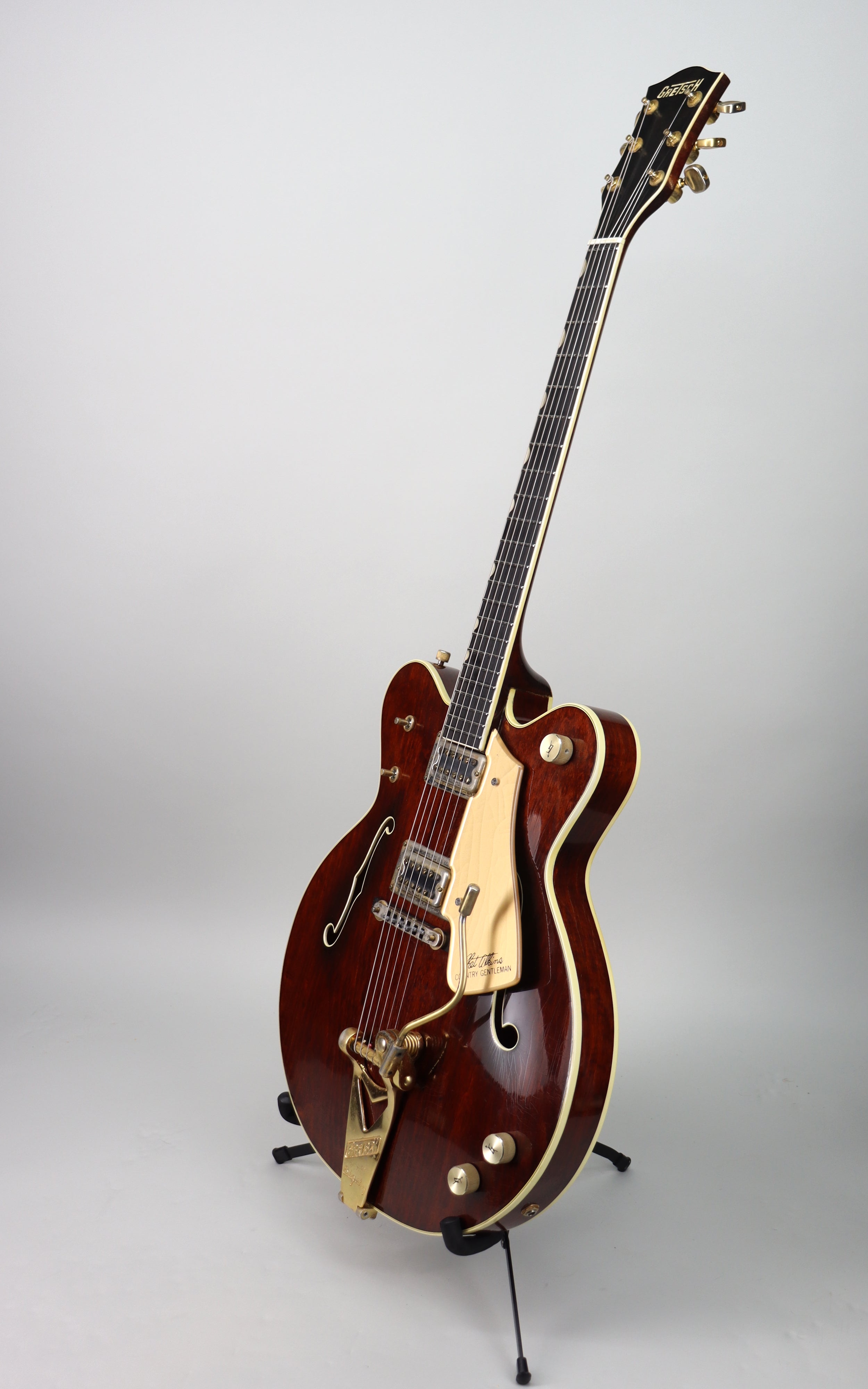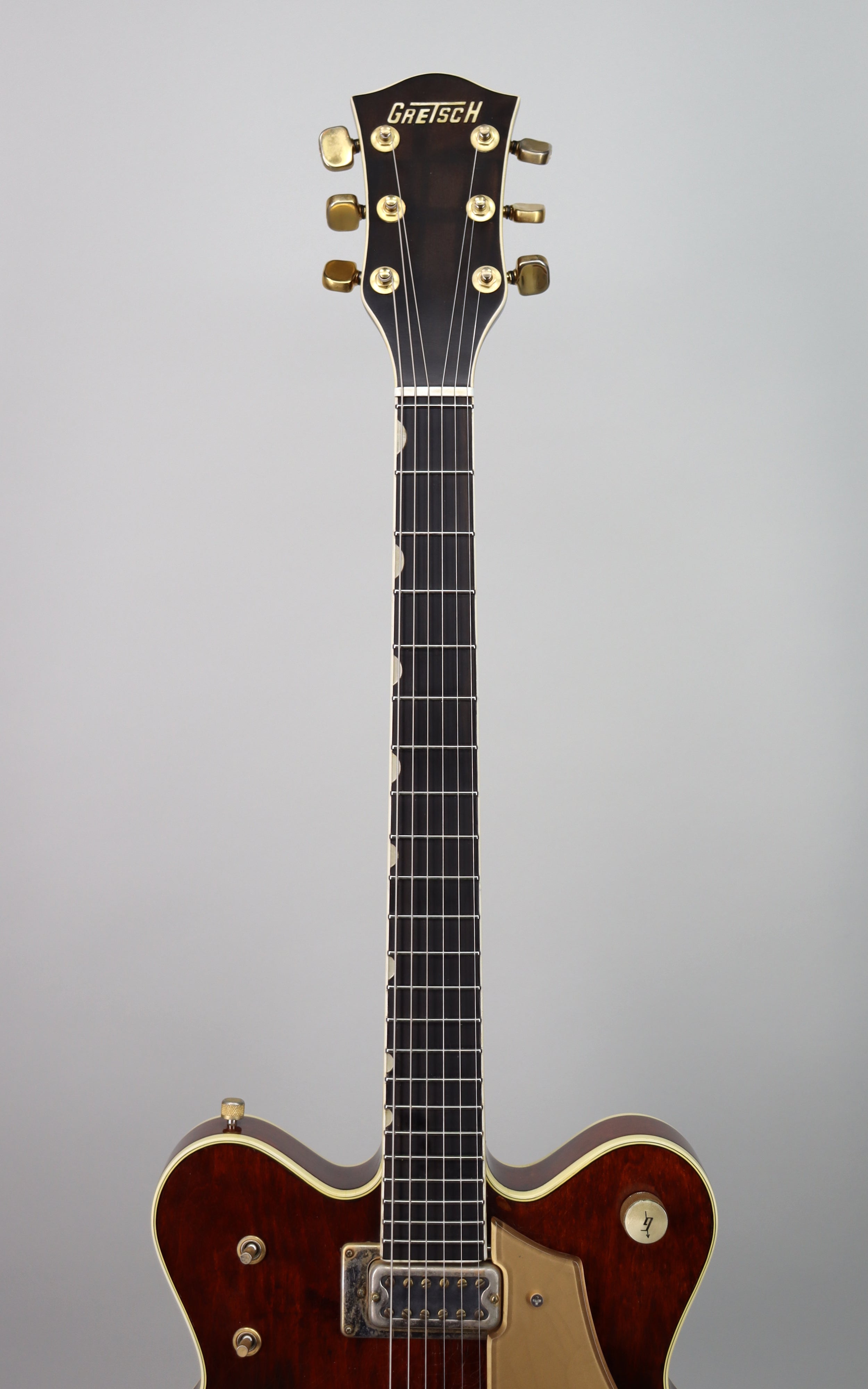 This era also marked a shift toward more open, lively designs—featuring real f-holes instead of the earlier simulated style—giving the guitar a more acoustic, responsive feel under your hands. And with the signature walnut finish and gold hardware, it carries that unmistakable upscale Gretsch look that never feels overdone.